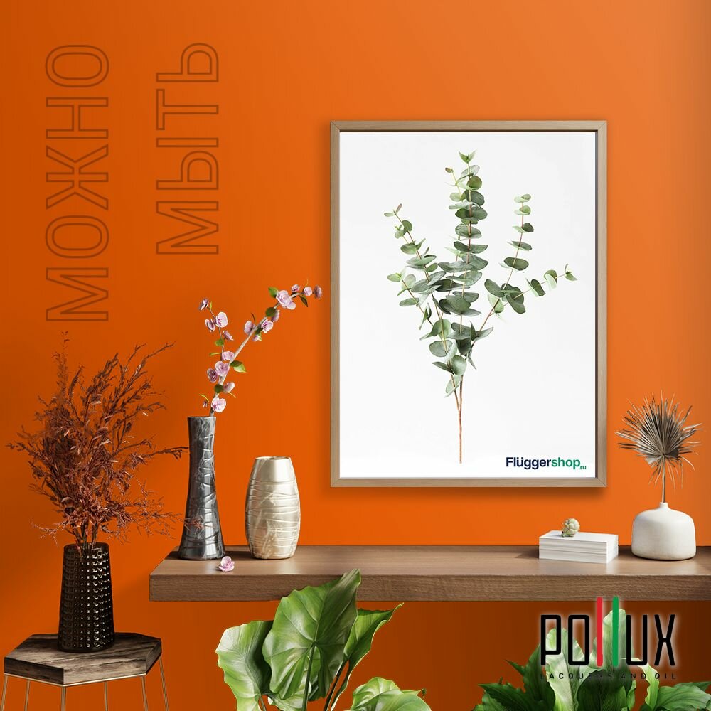 Краска моющаяся интерьерная для стен и потолков, Pollux INTERIOR без запаха, быстросохнущая, акриловая, матовое покрытие, цвет NCS S 1040-R50B, 1л.