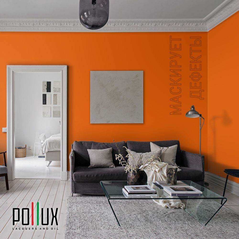 Краска моющаяся интерьерная для стен и потолков, Pollux INTERIOR без запаха, быстросохнущая, акриловая, матовое покрытие, цвет NCS S 0585-Y60R, 1л.