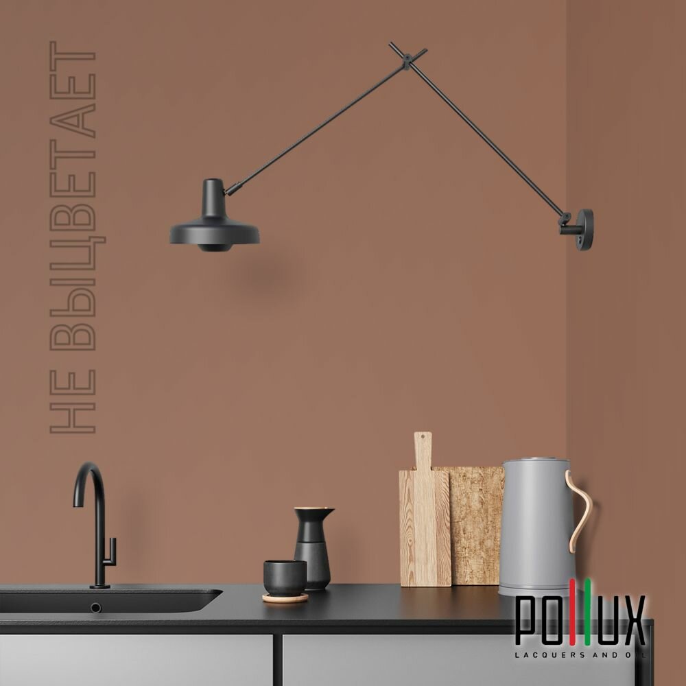 Краска моющаяся интерьерная для стен и потолков, Pollux INTERIOR без запаха, быстросохнущая, акриловая, матовое покрытие, цвет NCS S 7020-Y60R, 1л.