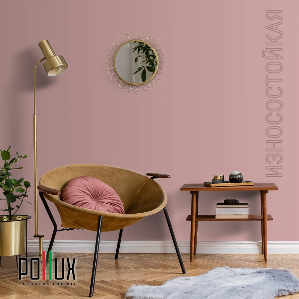 Краска моющаяся интерьерная для стен и потолков, Pollux INTERIOR без запаха, быстросохнущая, акриловая, матовое покрытие, цвет NCS S 2002-R, 1л.