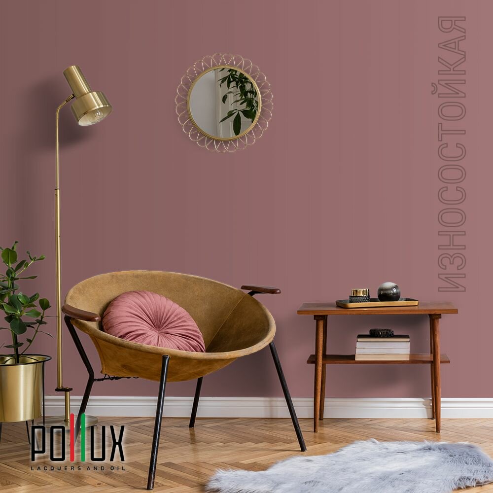 Краска моющаяся интерьерная для стен и потолков, Pollux INTERIOR без запаха, быстросохнущая, акриловая, матовое покрытие, цвет NCS S 6502-R, 1л.