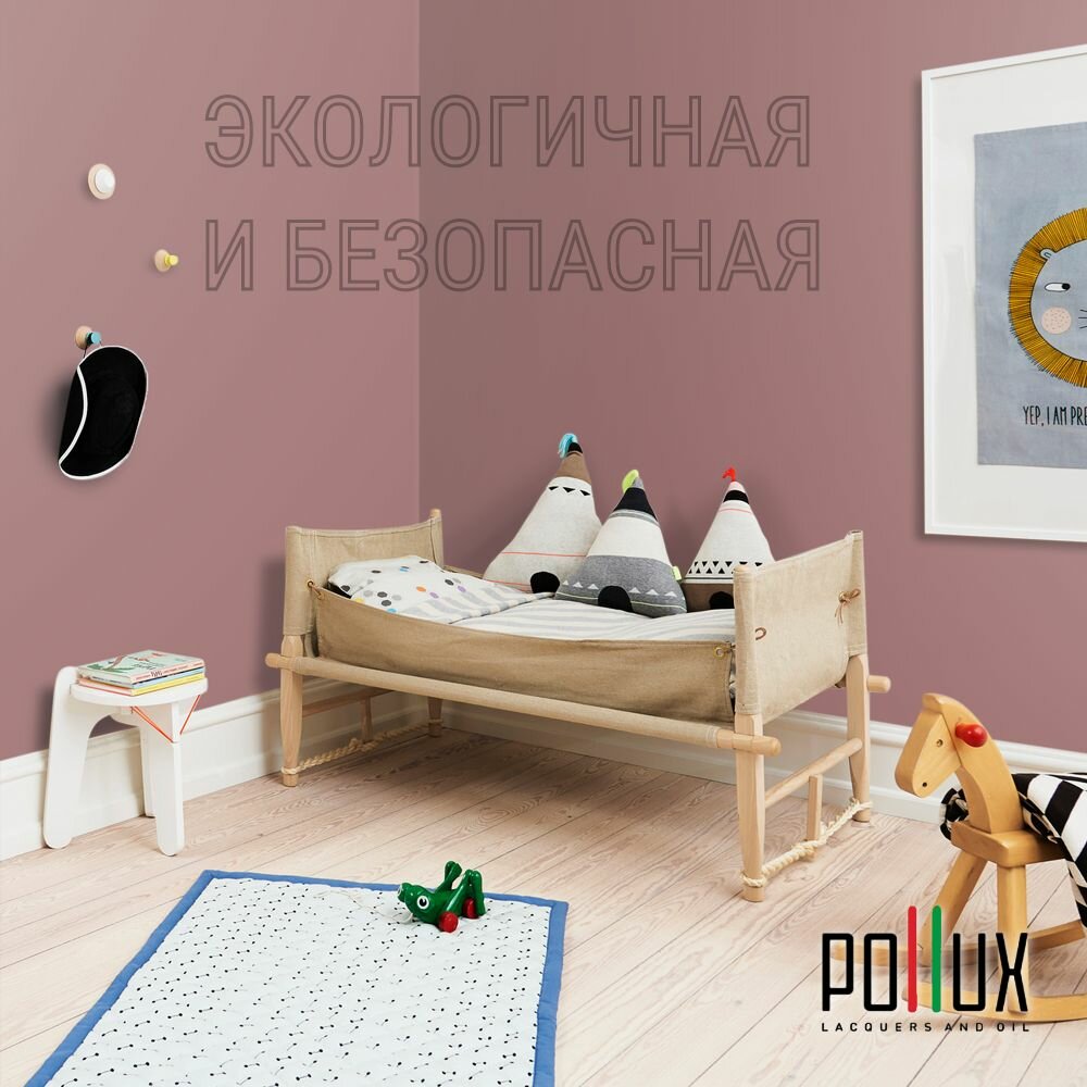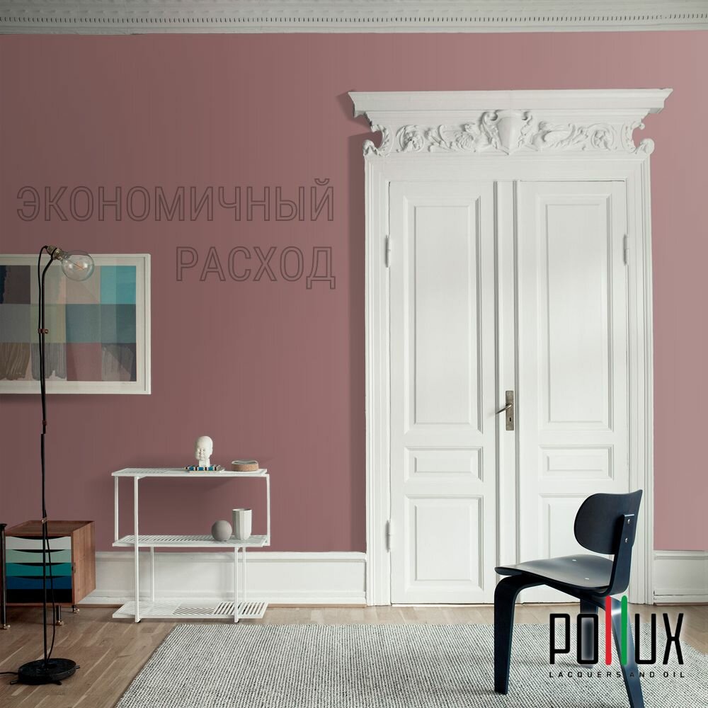 Краска моющаяся интерьерная для стен и потолков, Pollux INTERIOR без запаха, быстросохнущая, акриловая, матовое покрытие, цвет NCS S 2002-R, 1л.