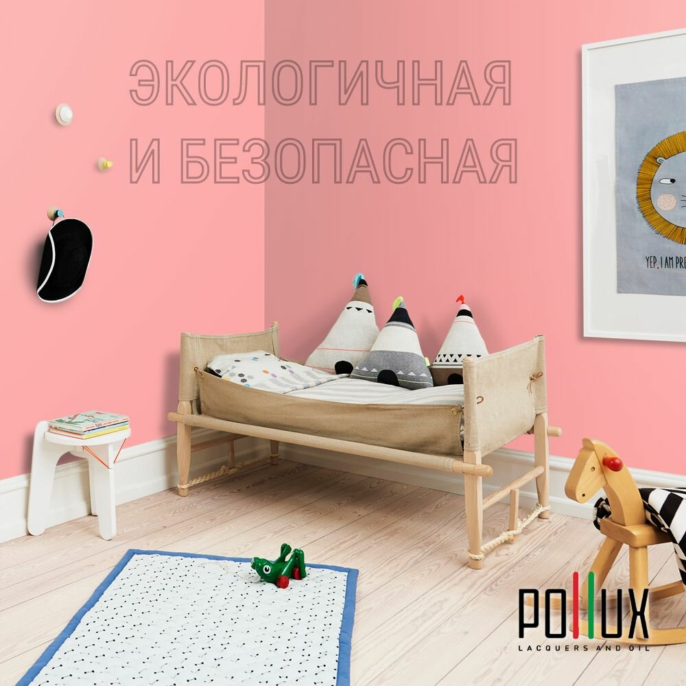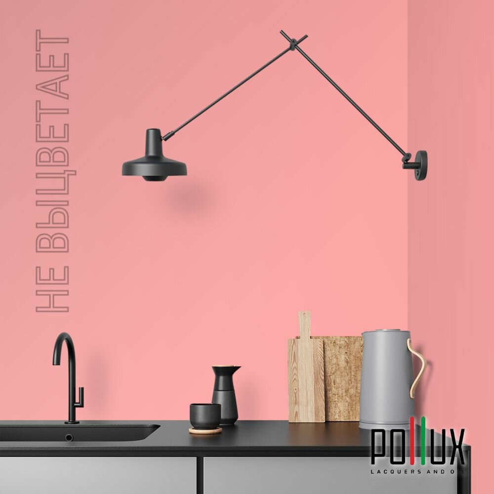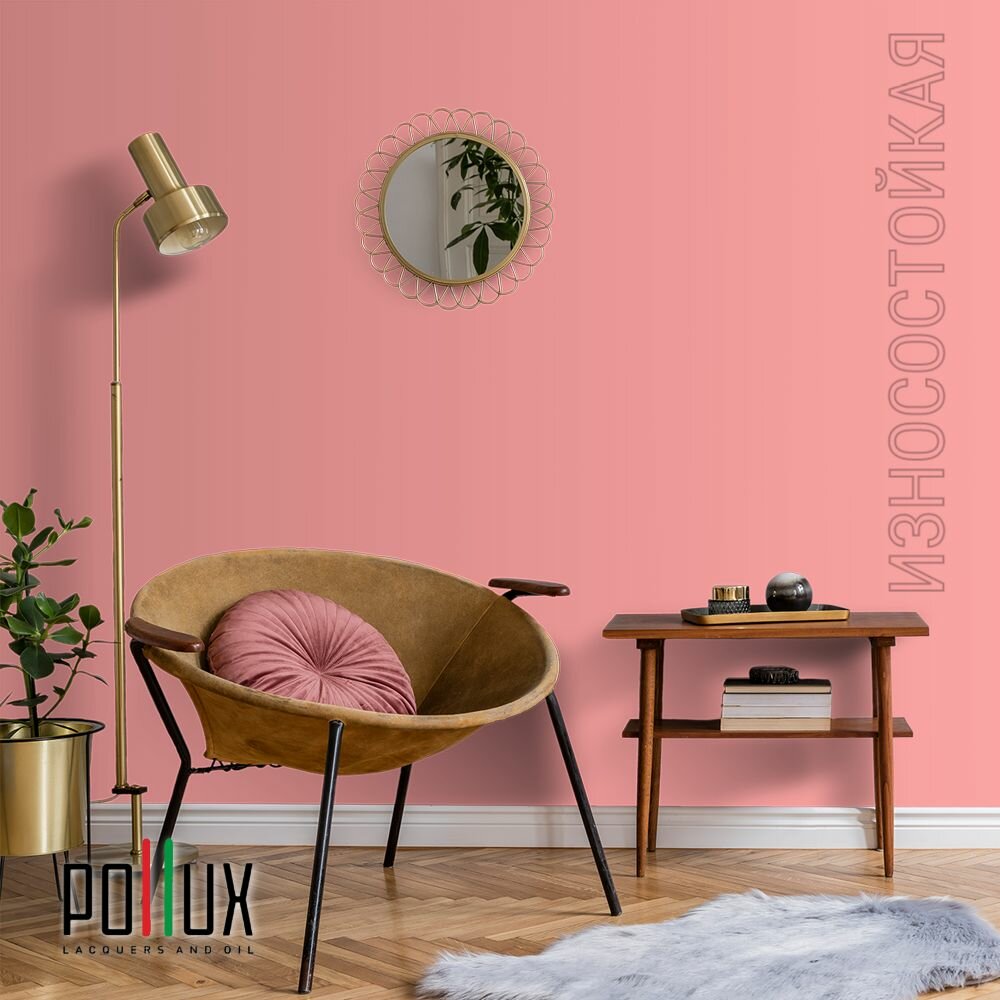 Краска моющаяся интерьерная для стен и потолков, Pollux INTERIOR без запаха, быстросохнущая, акриловая, матовое покрытие, цвет NCS S 2002-R, 1л.