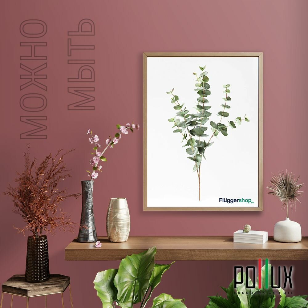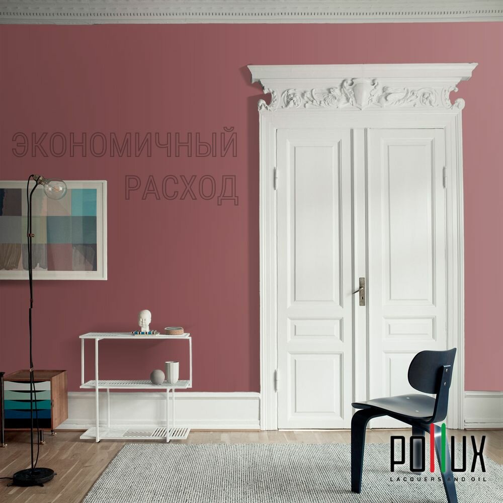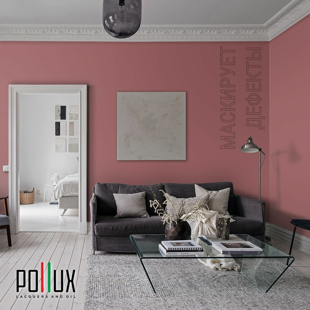 Краска моющаяся интерьерная для стен и потолков, Pollux INTERIOR без запаха, быстросохнущая, акриловая, матовое покрытие, цвет NCS S 2002-R, 1л.