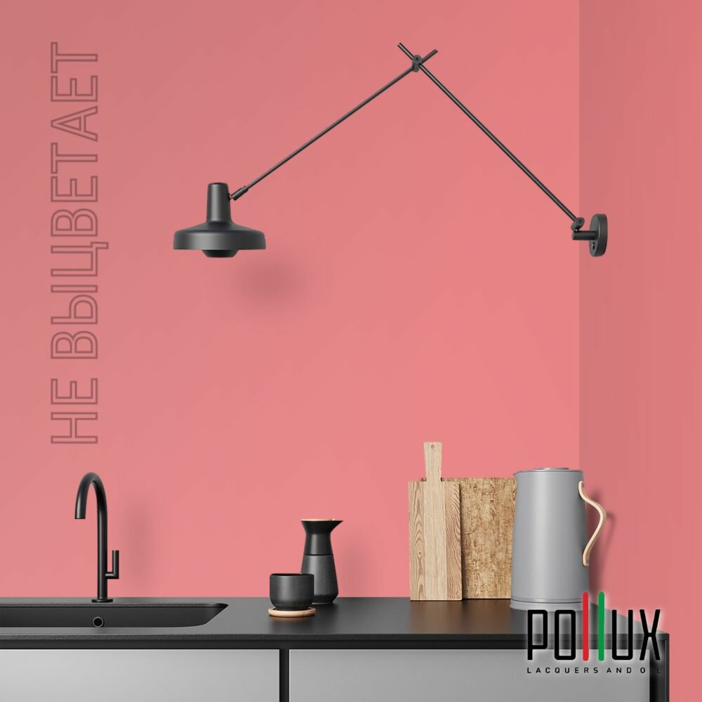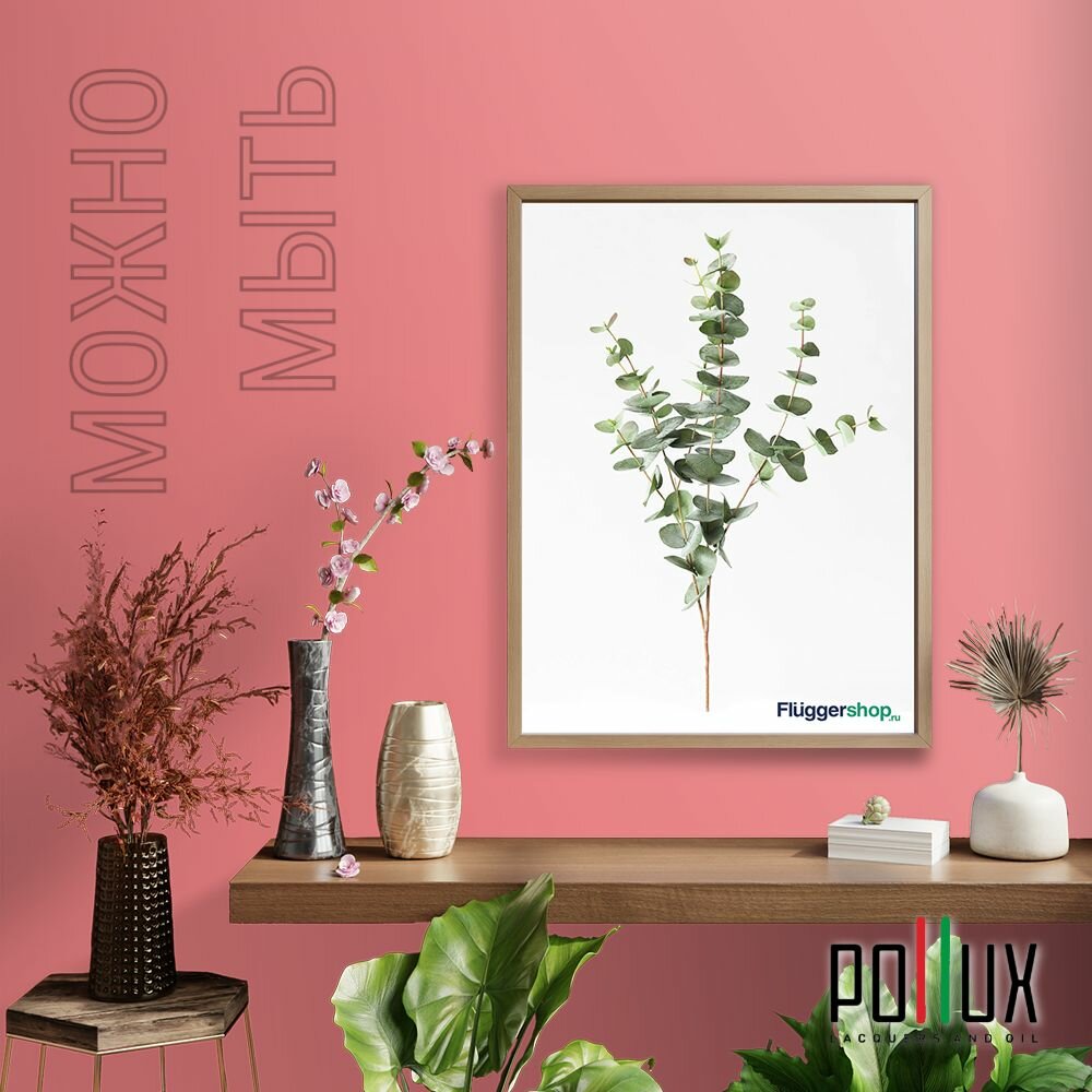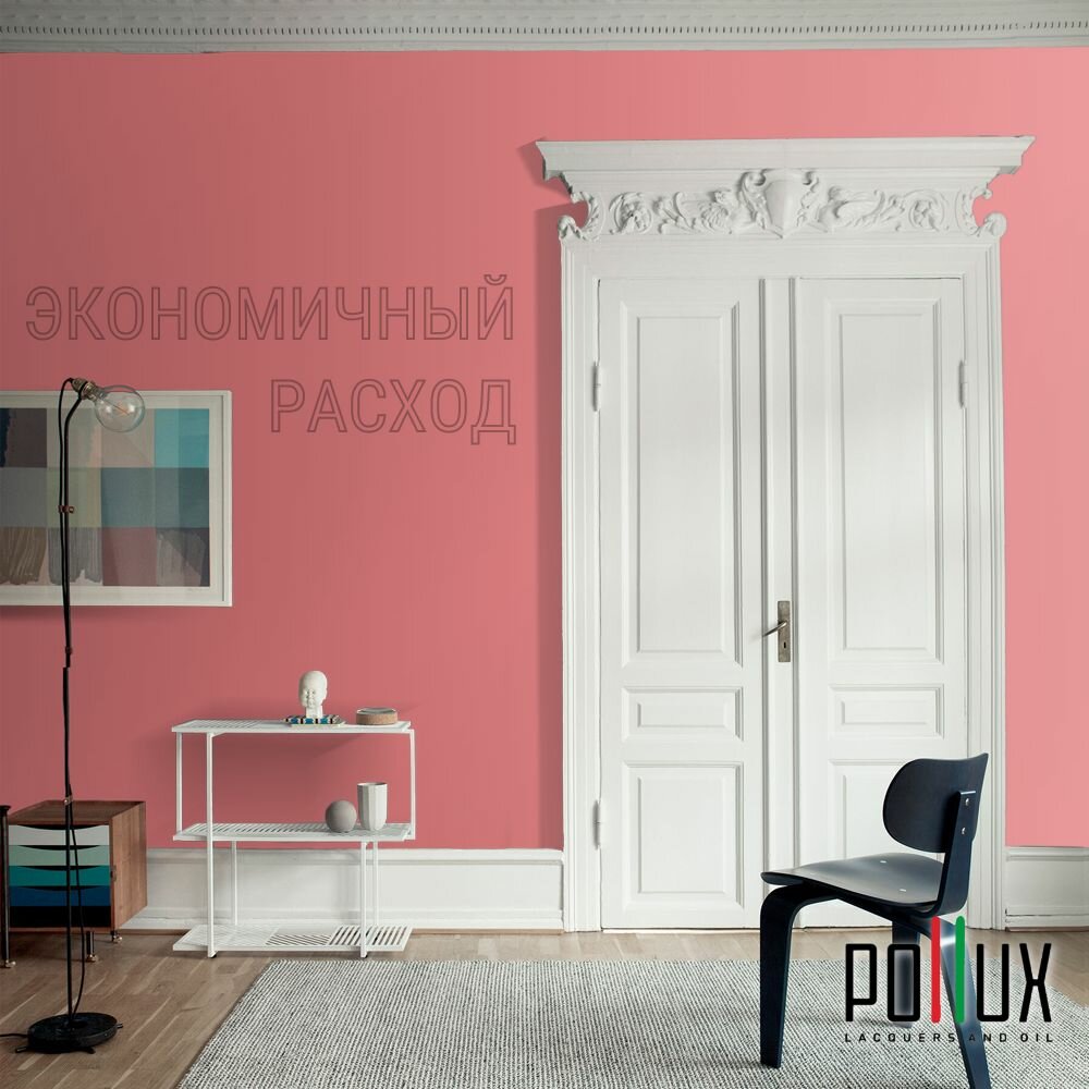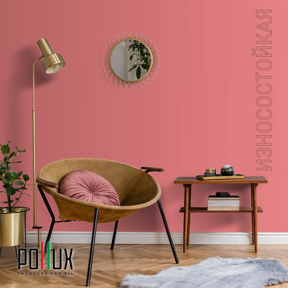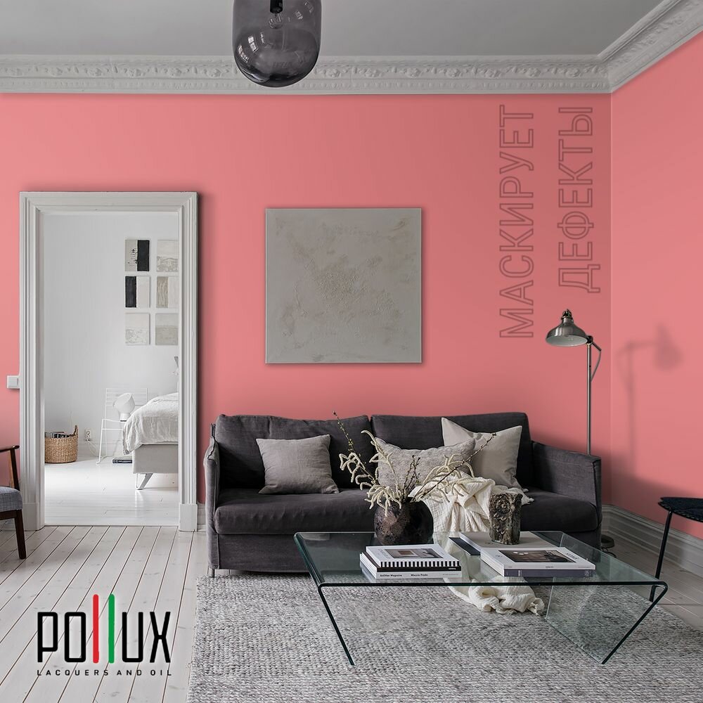 Краска моющаяся интерьерная для стен и потолков, Pollux INTERIOR без запаха, быстросохнущая, акриловая, матовое покрытие, цвет NCS S 2002-R, 1л.
