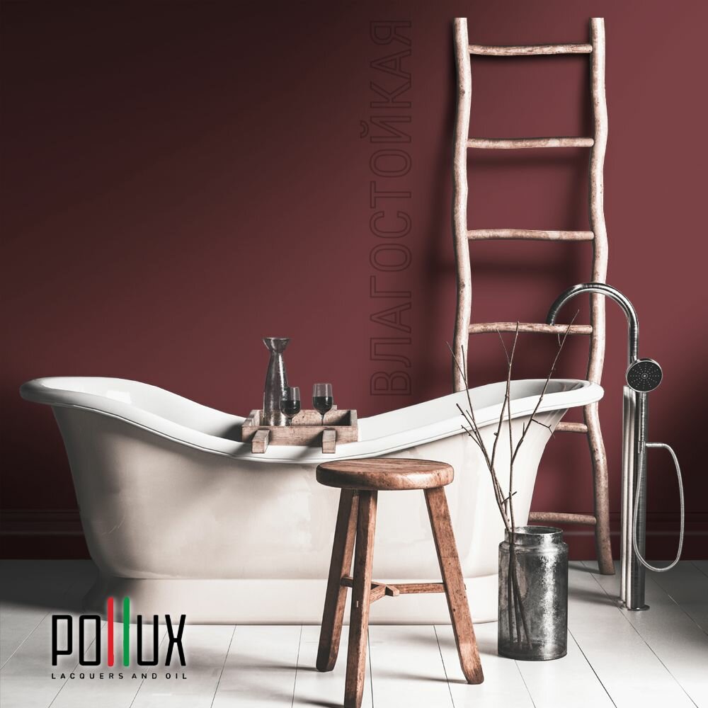 Краска моющаяся интерьерная для стен и потолков, Pollux INTERIOR без запаха, быстросохнущая, акриловая, матовое покрытие, цвет NCS S 6502-R, 1л.