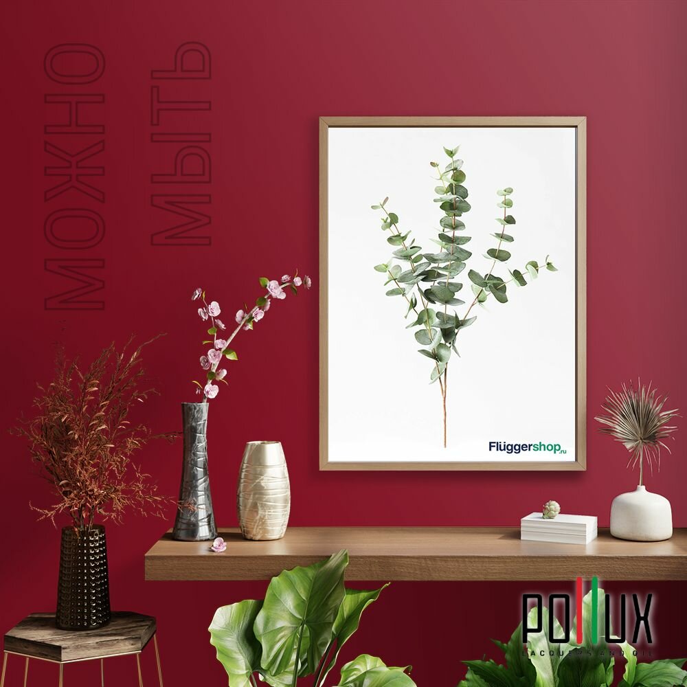 Краска моющаяся интерьерная для стен и потолков, Pollux INTERIOR без запаха, быстросохнущая, акриловая, матовое покрытие, цвет NCS S 2002-R, 1л.
