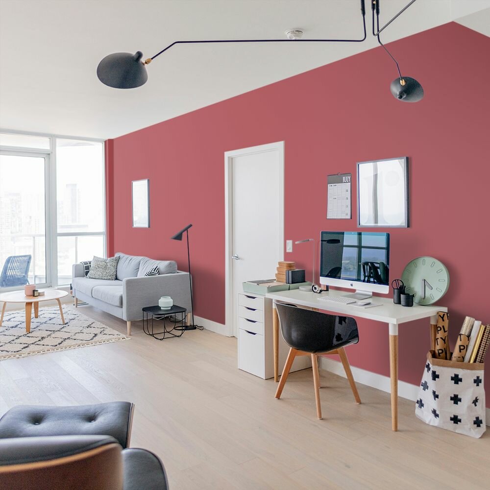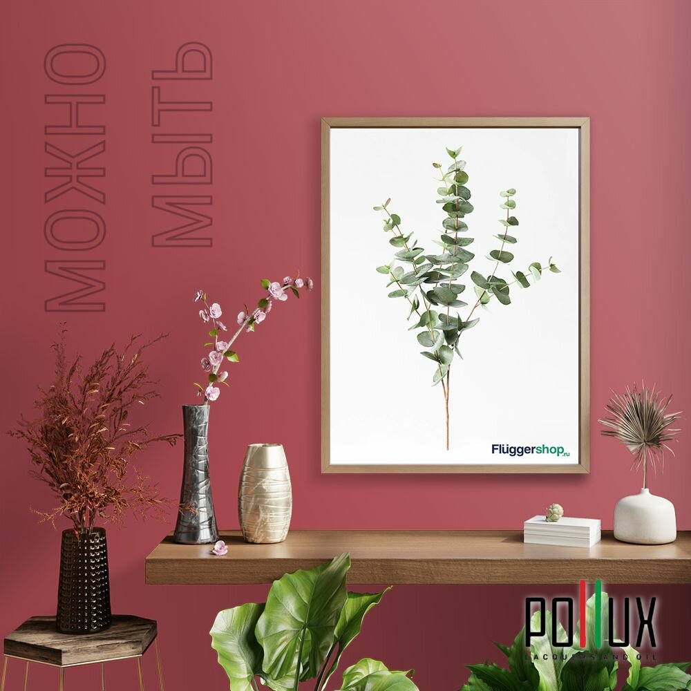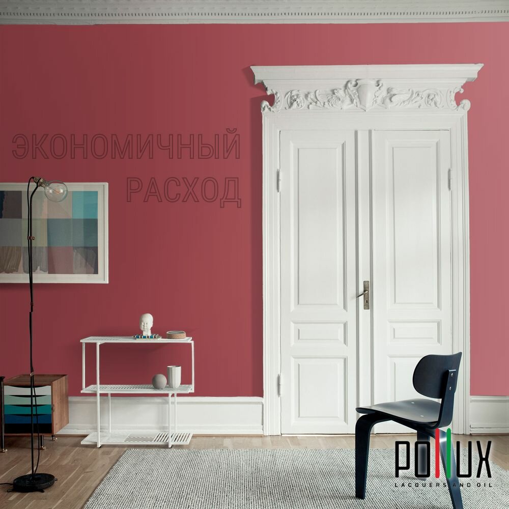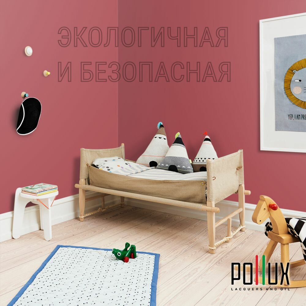 Краска моющаяся интерьерная для стен и потолков, Pollux INTERIOR без запаха, быстросохнущая, акриловая, матовое покрытие, цвет NCS S 2002-R, 1л.