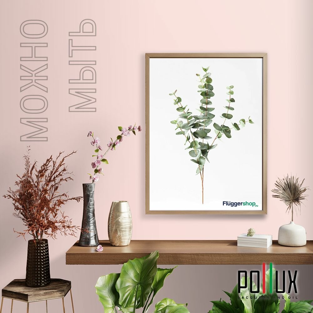 Краска моющаяся интерьерная для стен и потолков, Pollux INTERIOR без запаха, быстросохнущая, акриловая, матовое покрытие, цвет NCS S 2002-R, 1л.