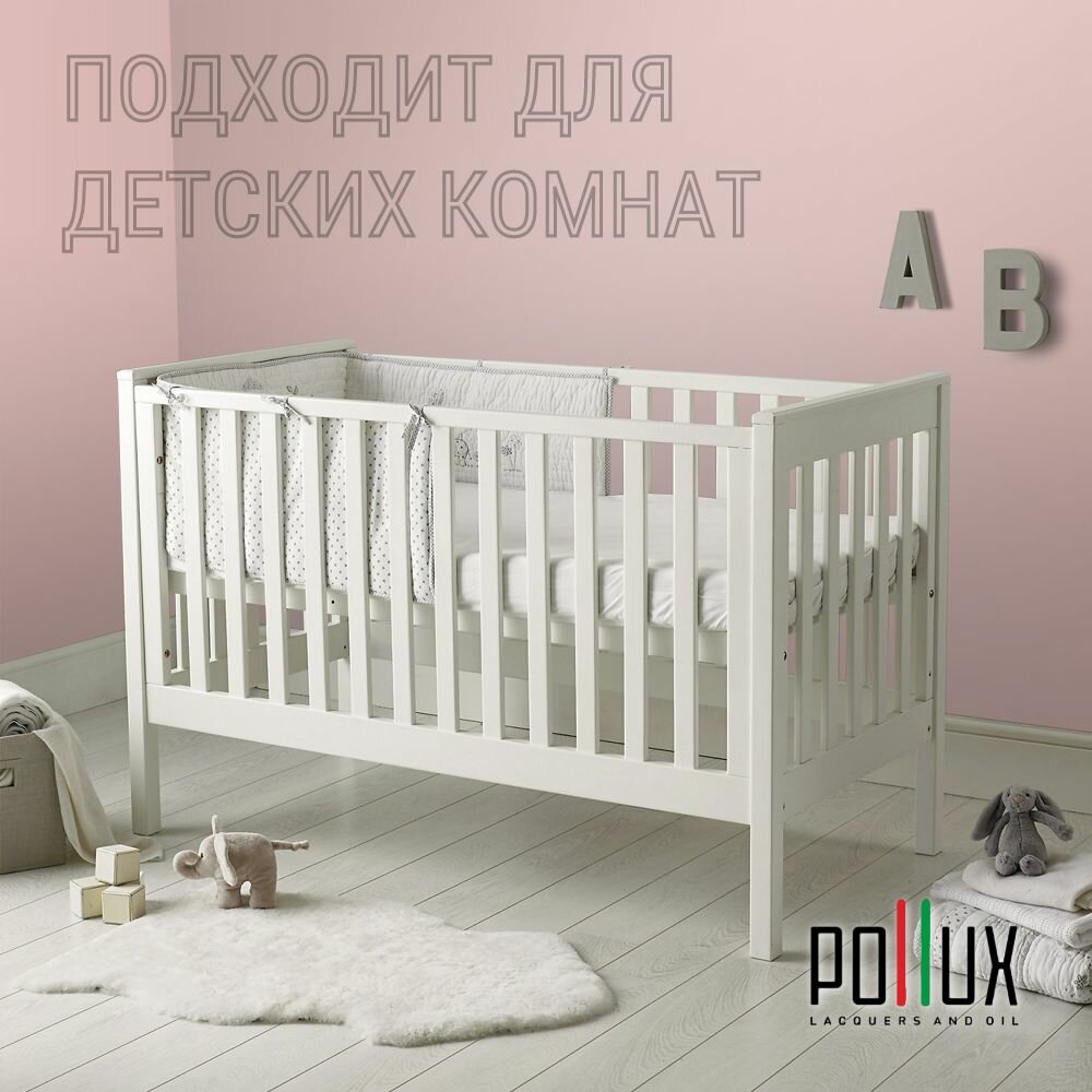 Краска моющаяся интерьерная для стен и потолков, Pollux INTERIOR без запаха, быстросохнущая, акриловая, матовое покрытие, цвет NCS S 0502-R, 1л.