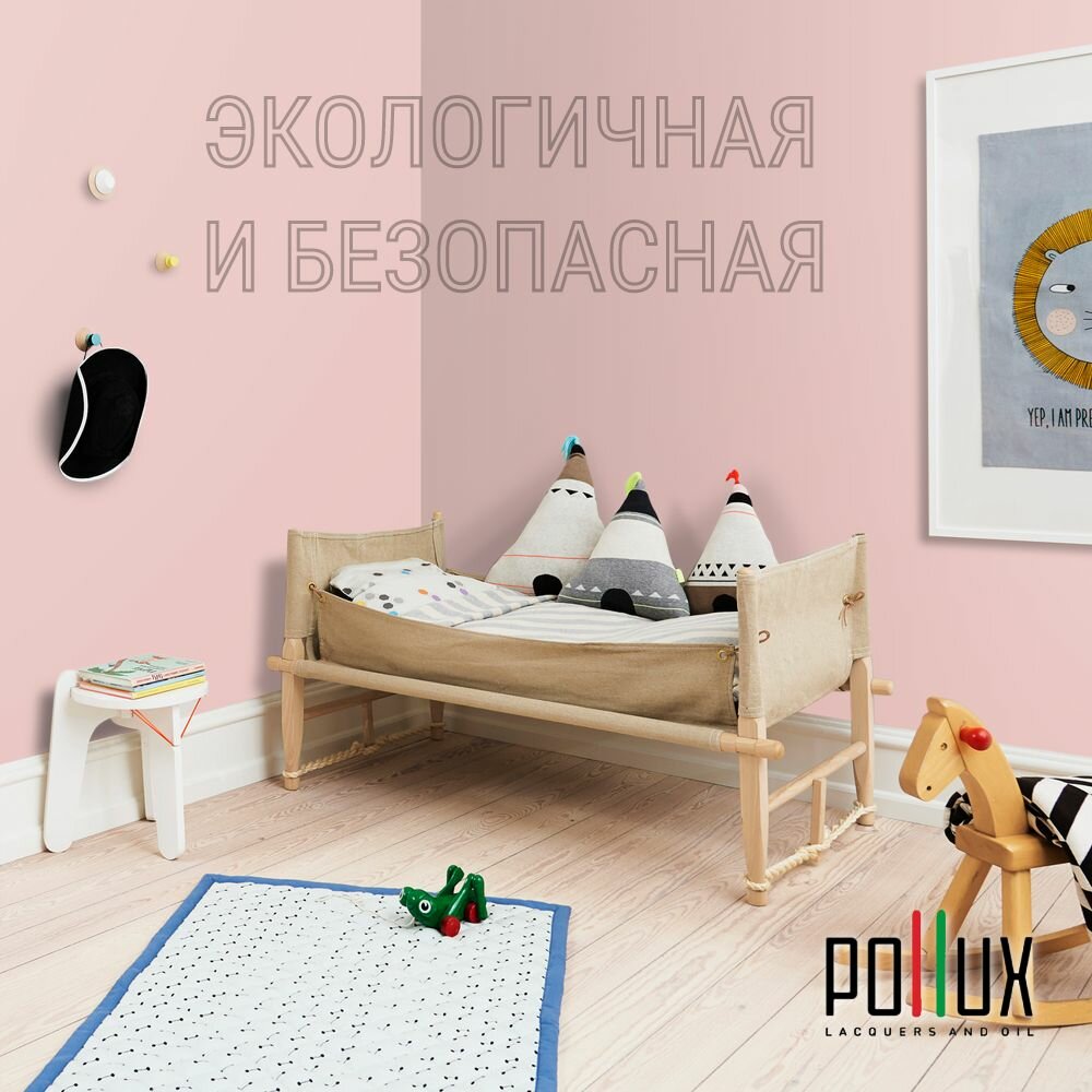 Краска моющаяся интерьерная для стен и потолков, Pollux INTERIOR без запаха, быстросохнущая, акриловая, матовое покрытие, цвет NCS S 2002-R, 1л.