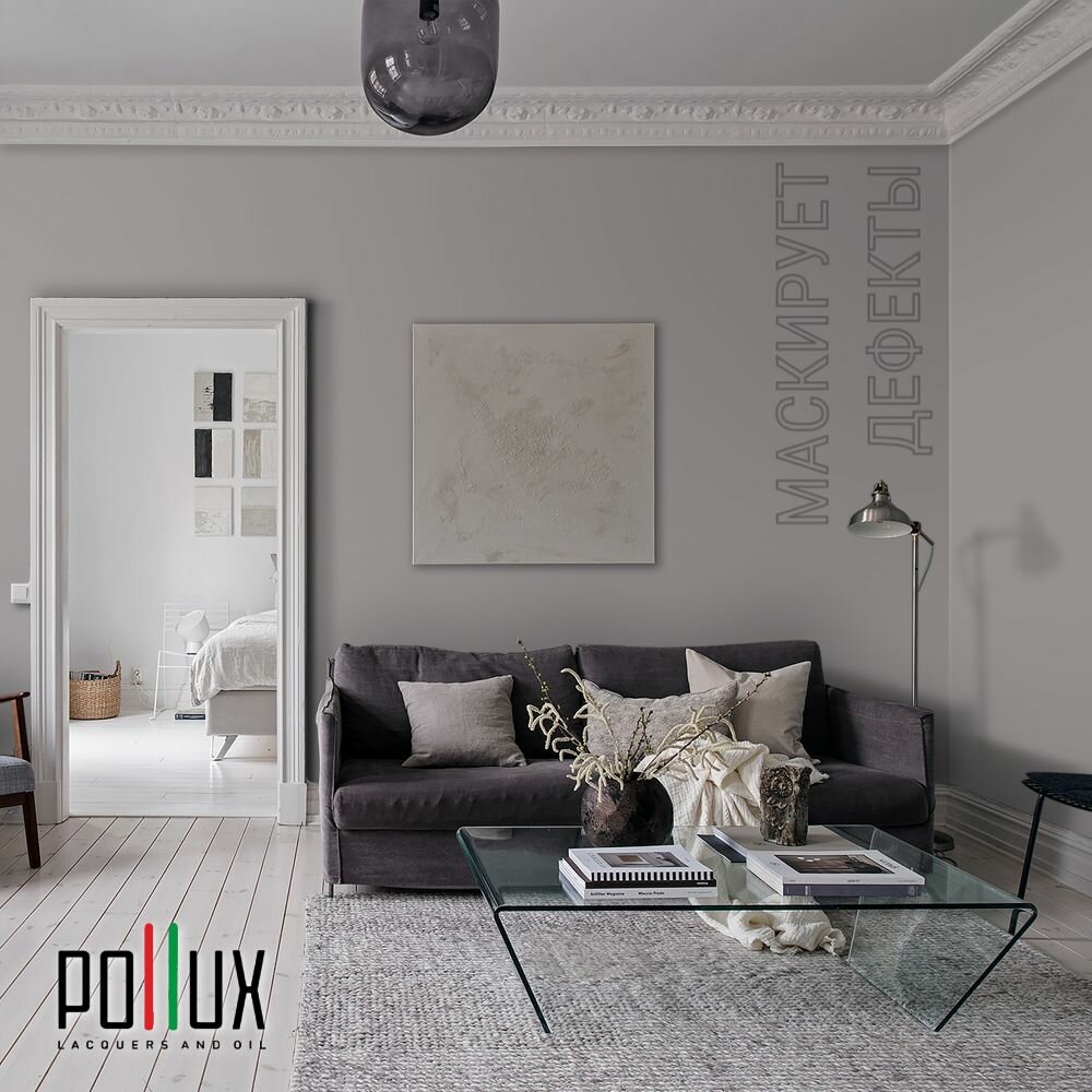 Краска моющаяся интерьерная для стен и потолков, Pollux INTERIOR без запаха, быстросохнущая, акриловая, матовое покрытие, цвет NCS S 7020-R, 1л.
