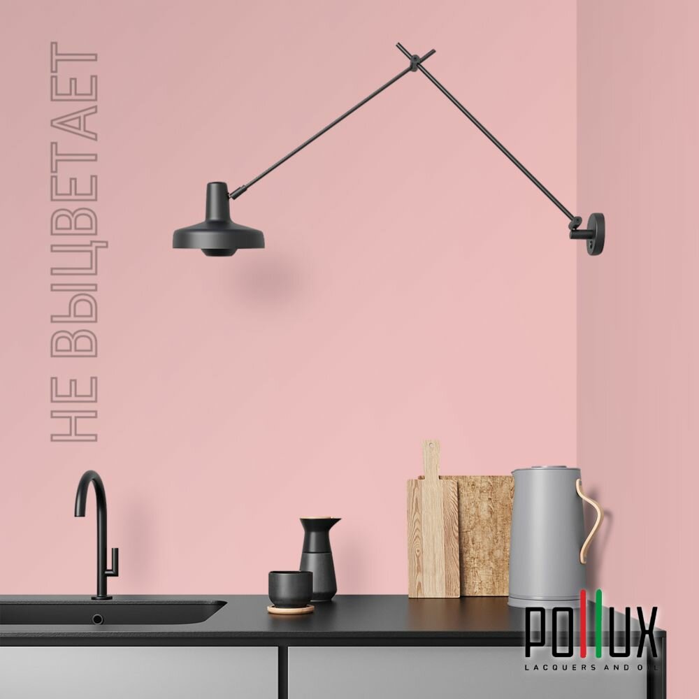 Краска моющаяся интерьерная для стен и потолков, Pollux INTERIOR без запаха, быстросохнущая, акриловая, матовое покрытие, цвет NCS S 2002-R, 1л.