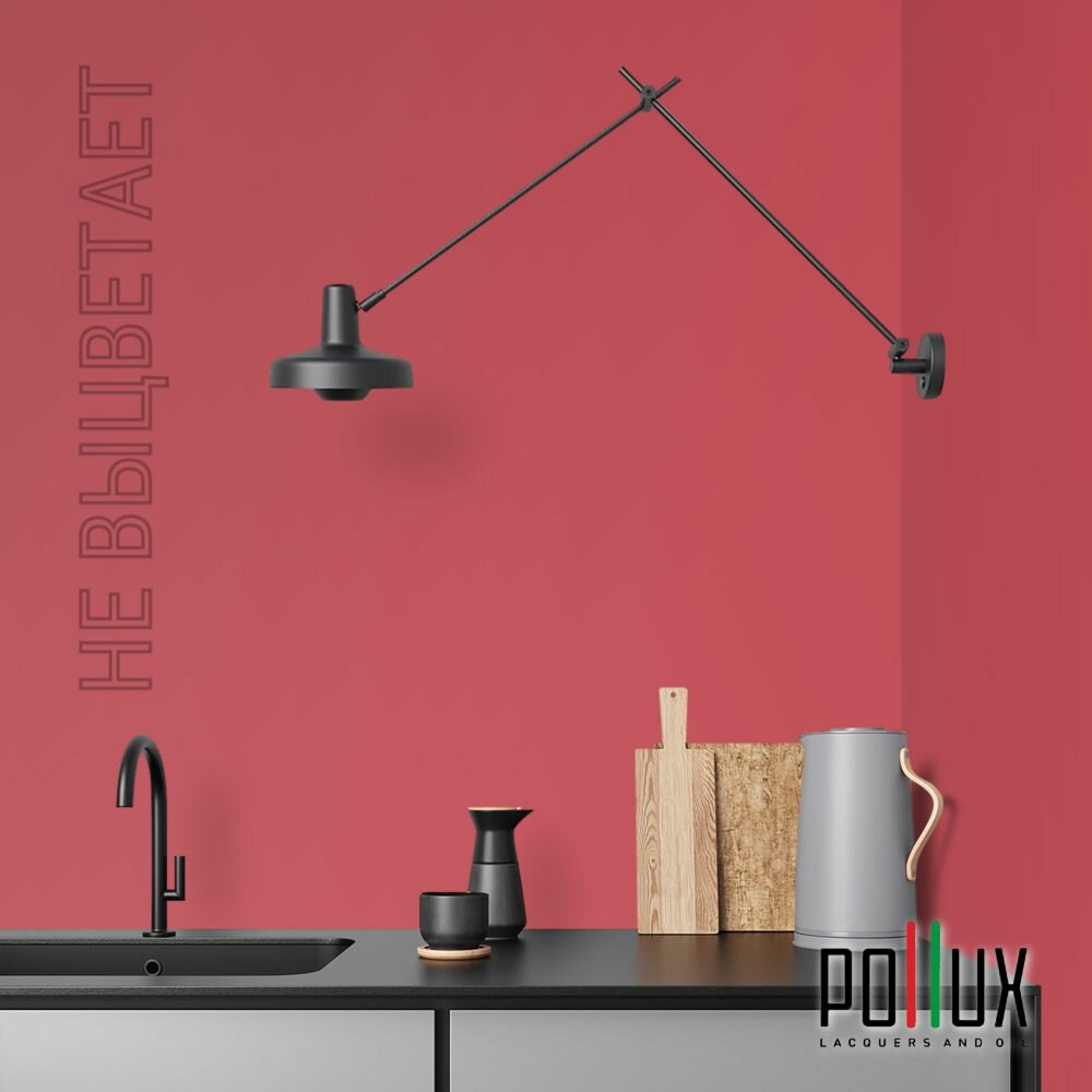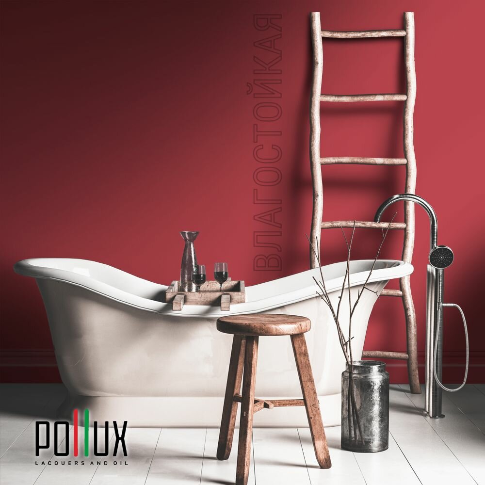 Краска моющаяся интерьерная для стен и потолков, Pollux INTERIOR без запаха, быстросохнущая, акриловая, матовое покрытие, цвет NCS S 2002-R, 1л.