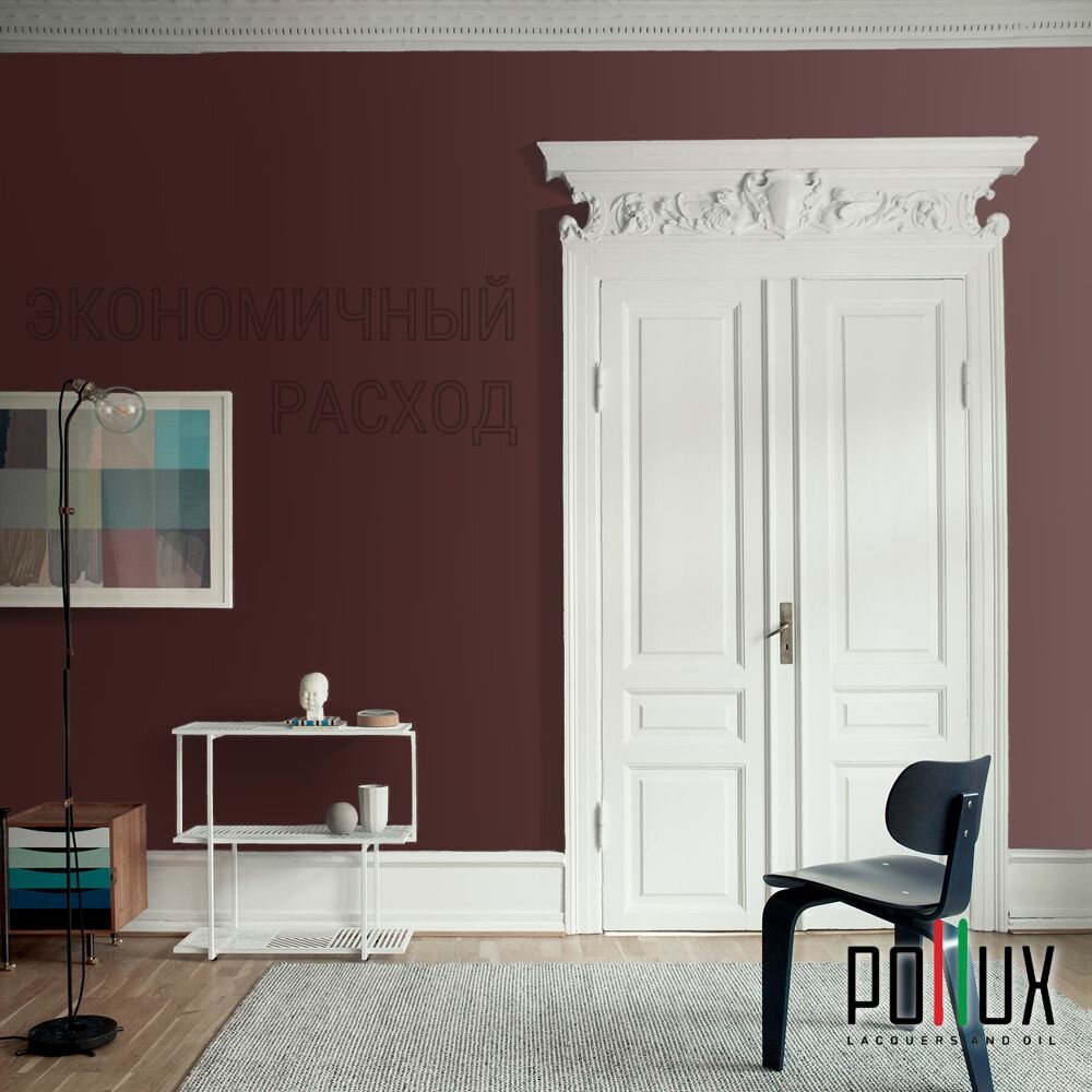 Краска моющаяся интерьерная для стен и потолков, Pollux INTERIOR без запаха, быстросохнущая, акриловая, матовое покрытие, цвет NCS S 4502-R, 1л.