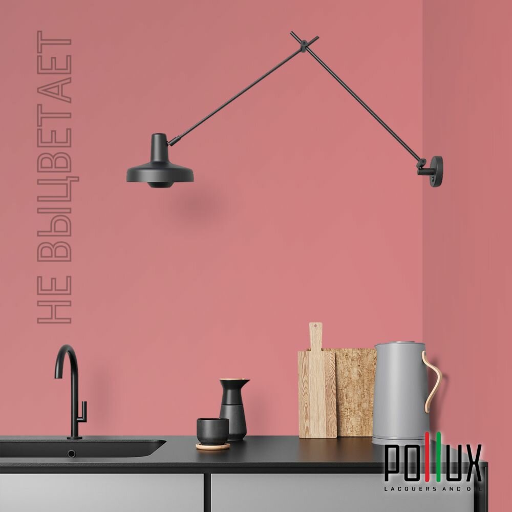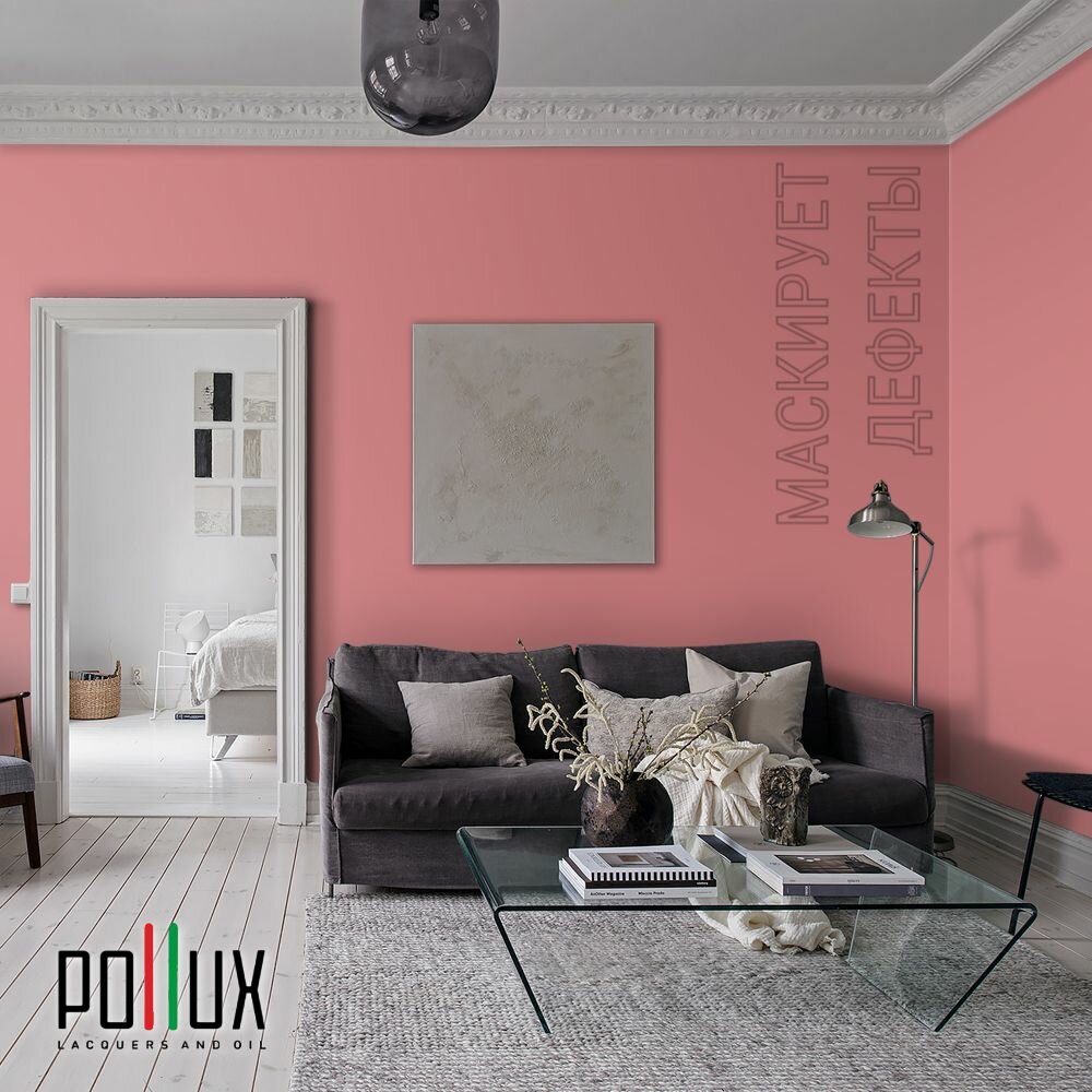 Краска моющаяся интерьерная для стен и потолков, Pollux INTERIOR без запаха, быстросохнущая, акриловая, матовое покрытие, цвет NCS S 2002-R, 1л.
