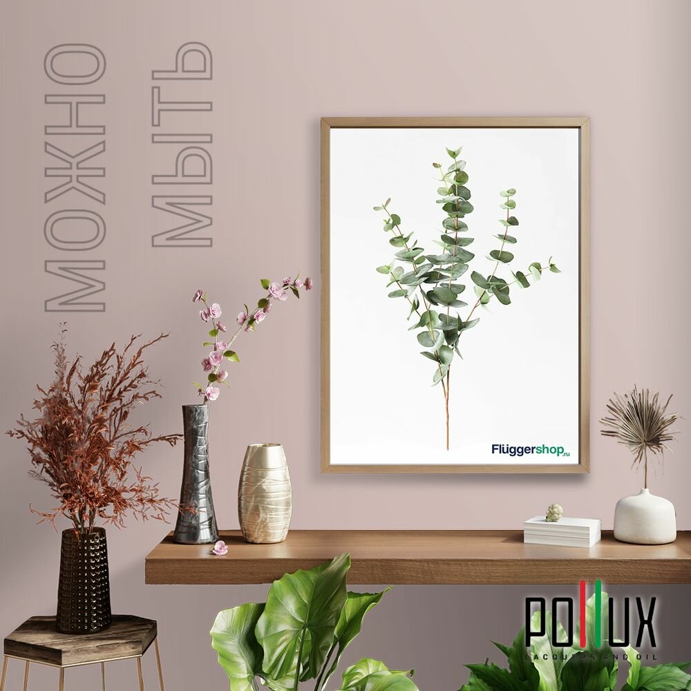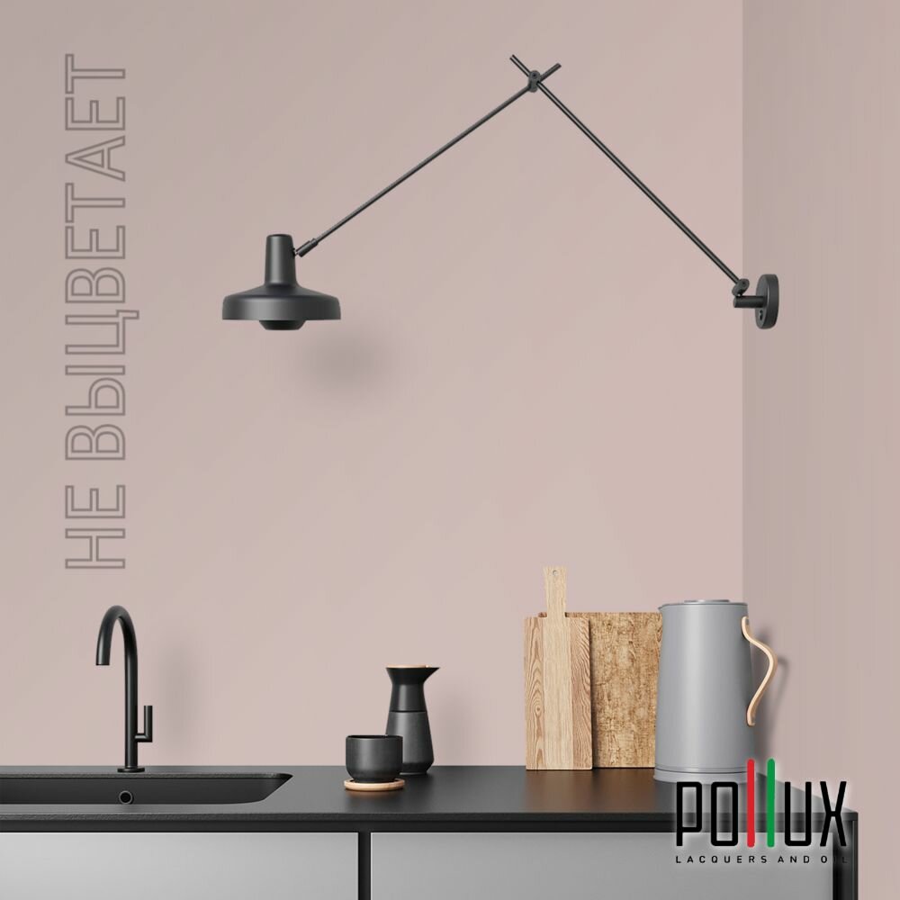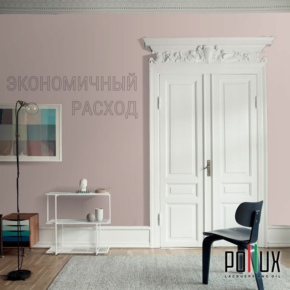 Краска моющаяся интерьерная для стен и потолков, Pollux INTERIOR без запаха, быстросохнущая, акриловая, матовое покрытие, цвет NCS S 2002-R, 1л.