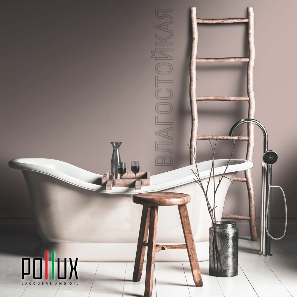 Краска моющаяся интерьерная для стен и потолков, Pollux INTERIOR без запаха, быстросохнущая, акриловая, матовое покрытие, цвет NCS S 2502-R, 1л.