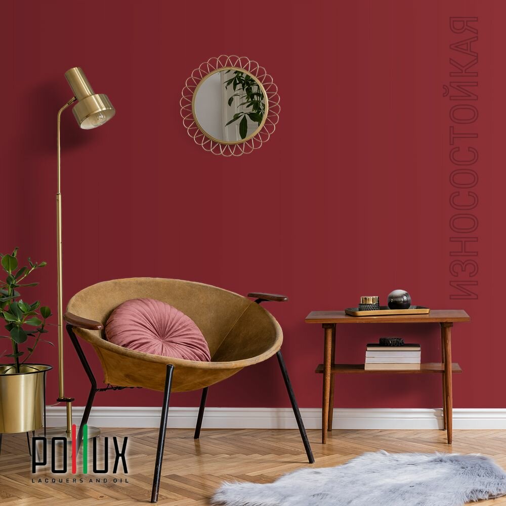 Краска моющаяся интерьерная для стен и потолков, Pollux INTERIOR без запаха, быстросохнущая, акриловая, матовое покрытие, цвет NCS S 3030-R, 5л.