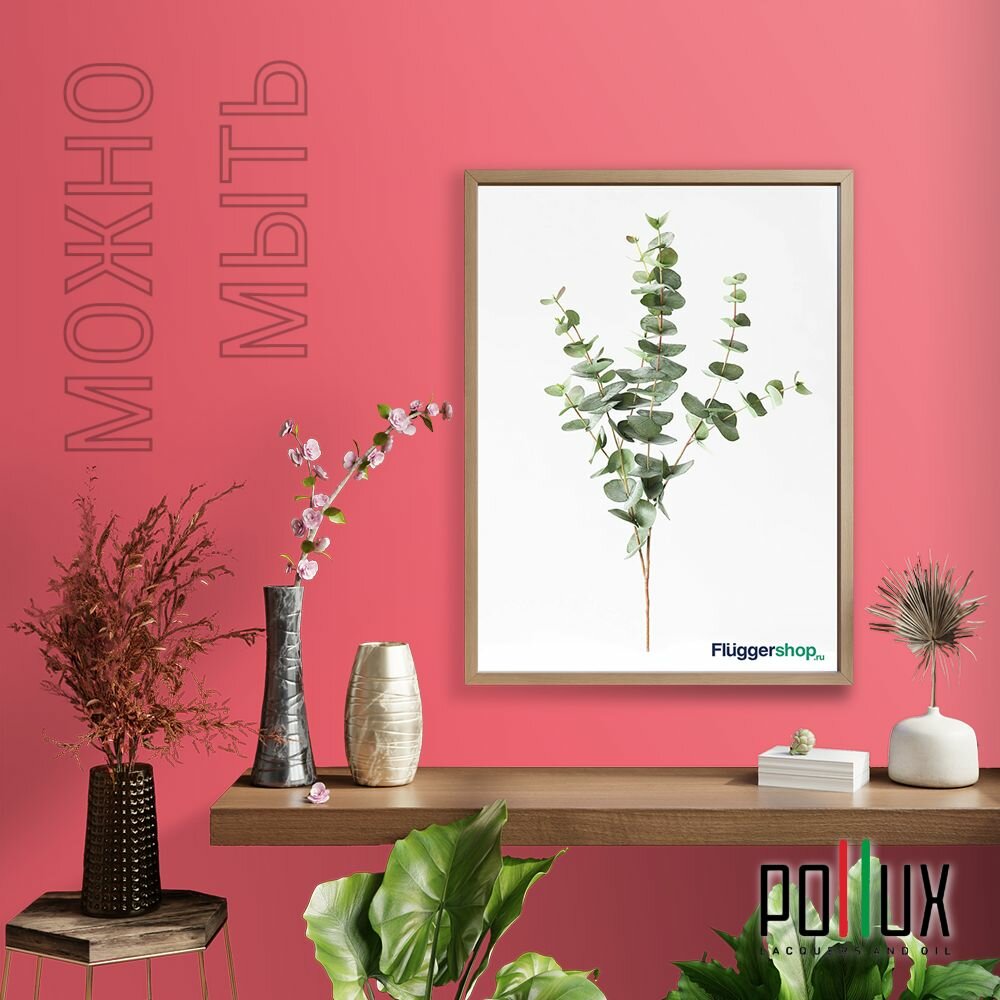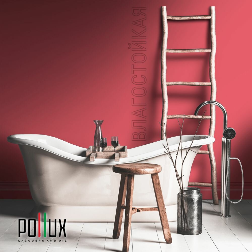 Краска моющаяся интерьерная для стен и потолков, Pollux INTERIOR без запаха, быстросохнущая, акриловая, матовое покрытие, цвет NCS S 2002-R, 1л.