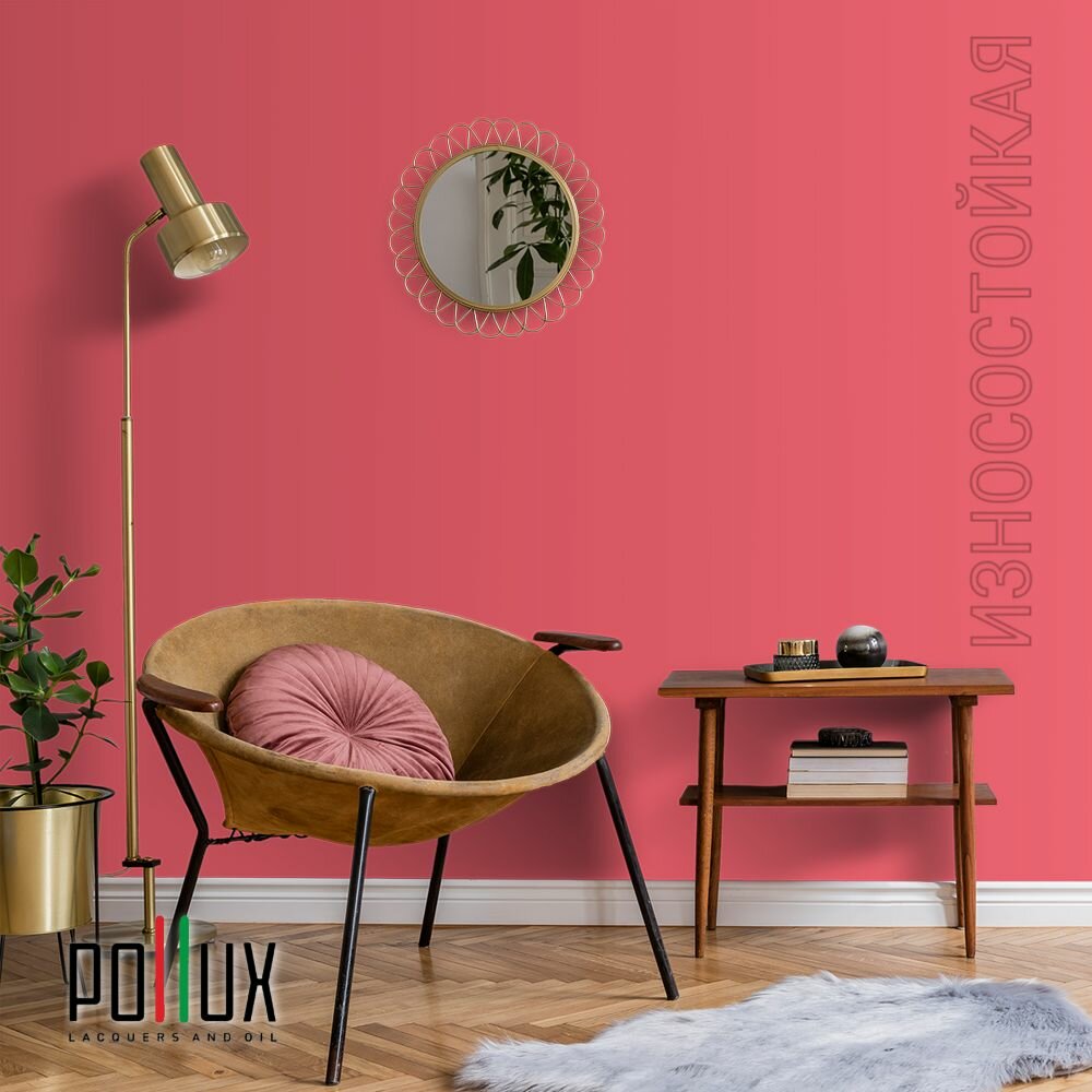 Краска моющаяся интерьерная для стен и потолков, Pollux INTERIOR без запаха, быстросохнущая, акриловая, матовое покрытие, цвет NCS S 3030-R, 5л.