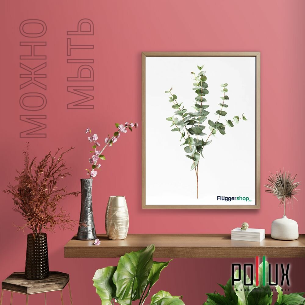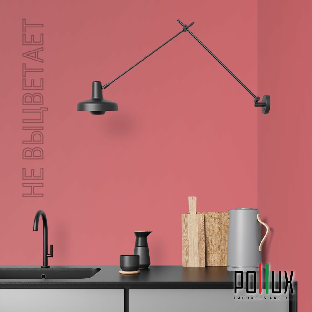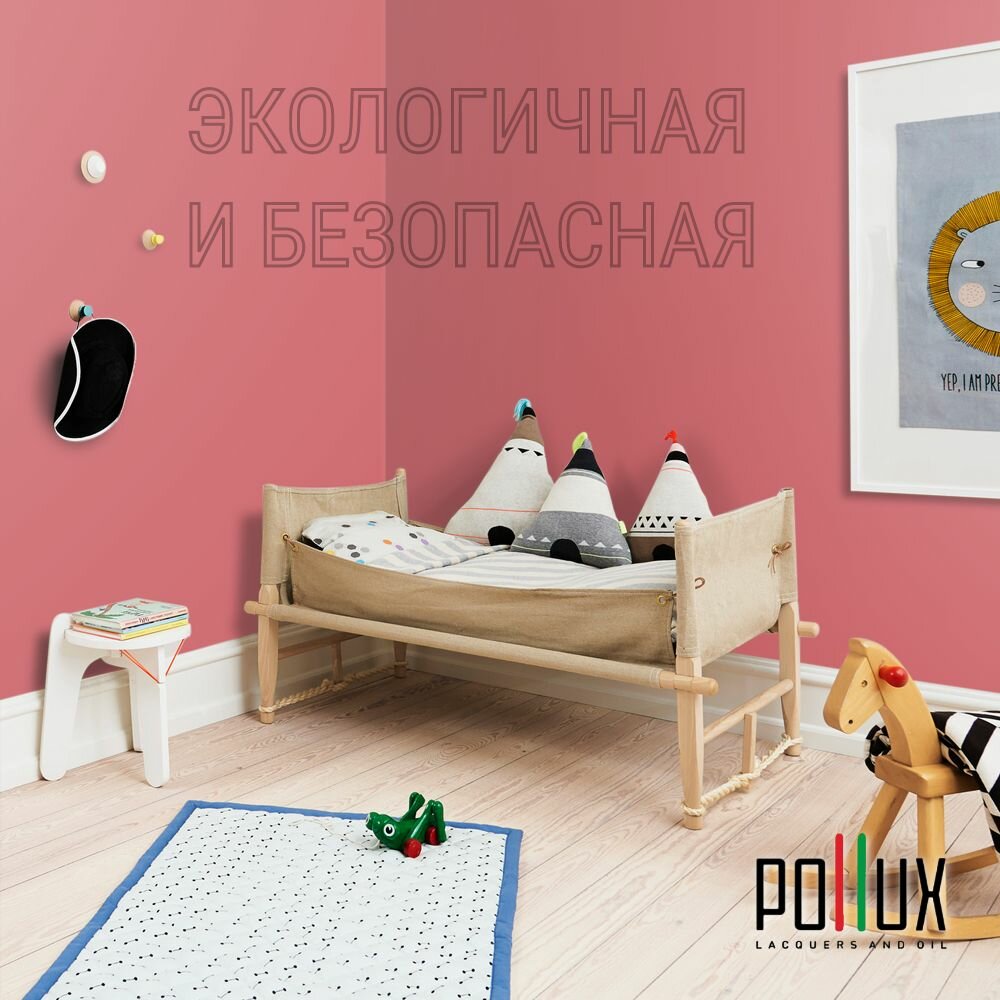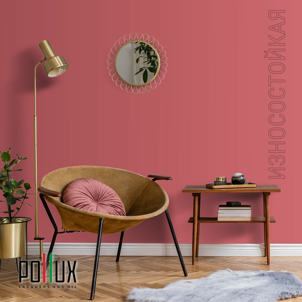 Краска моющаяся интерьерная для стен и потолков, Pollux INTERIOR без запаха, быстросохнущая, акриловая, матовое покрытие, цвет NCS S 2002-R, 1л.