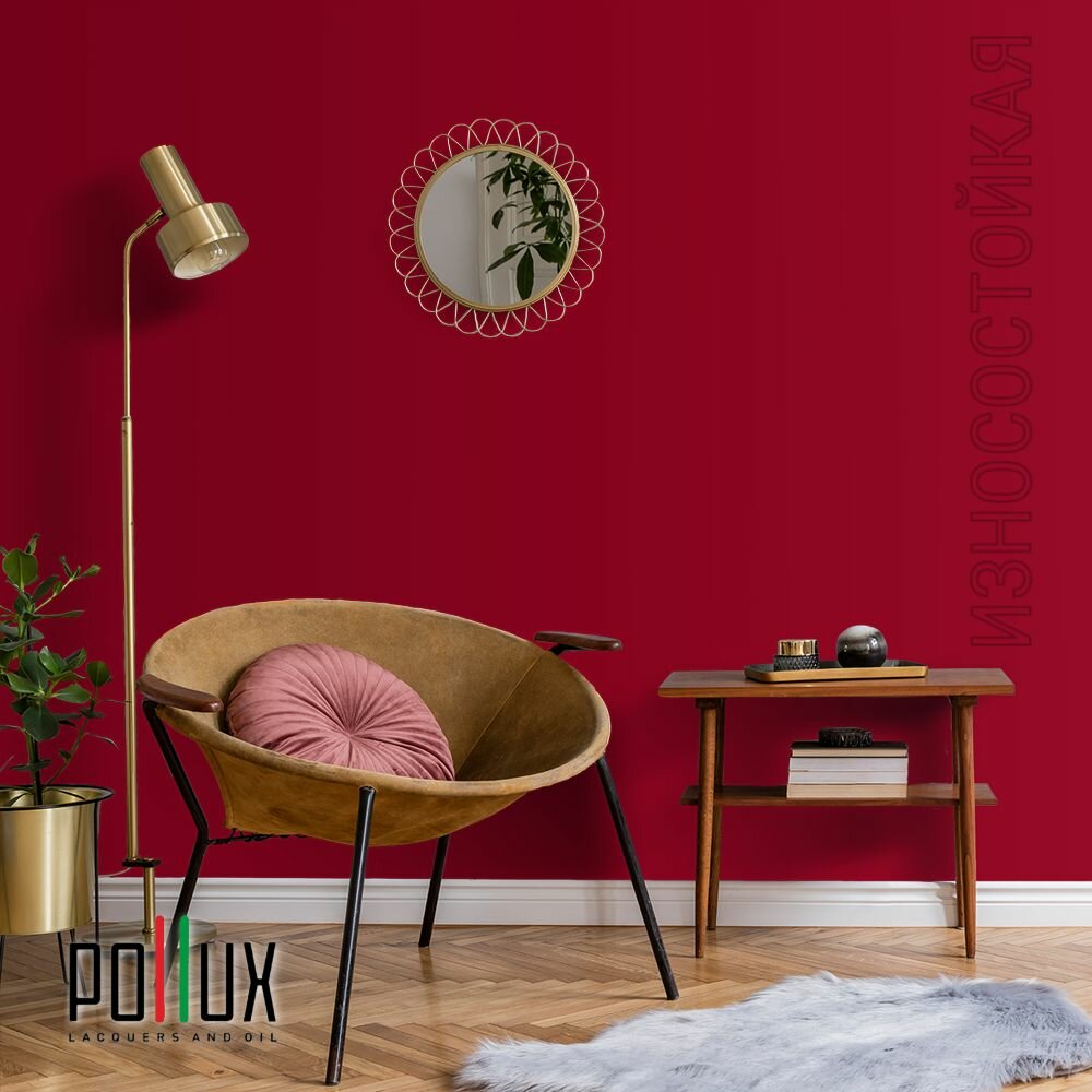 Краска моющаяся интерьерная для стен и потолков, Pollux INTERIOR без запаха, быстросохнущая, акриловая, матовое покрытие, цвет NCS S 3030-R, 5л.