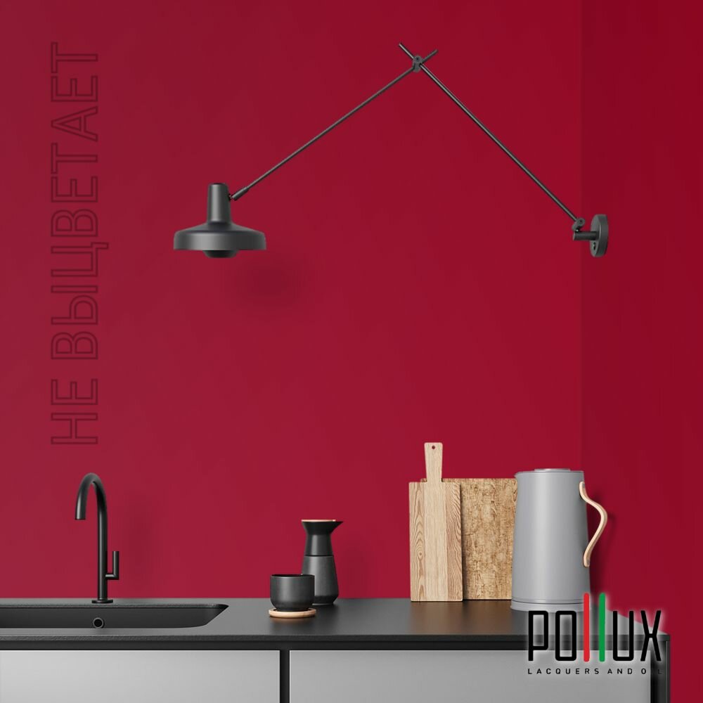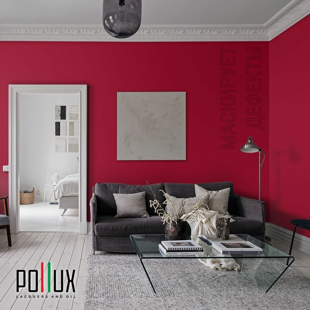 Краска моющаяся интерьерная для стен и потолков, Pollux INTERIOR без запаха, быстросохнущая, акриловая, матовое покрытие, цвет NCS S 2002-R, 1л.