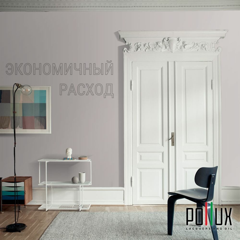 Краска моющаяся интерьерная для стен и потолков, Pollux INTERIOR без запаха, быстросохнущая, акриловая, матовое покрытие, цвет NCS S 7502-R, 1л.