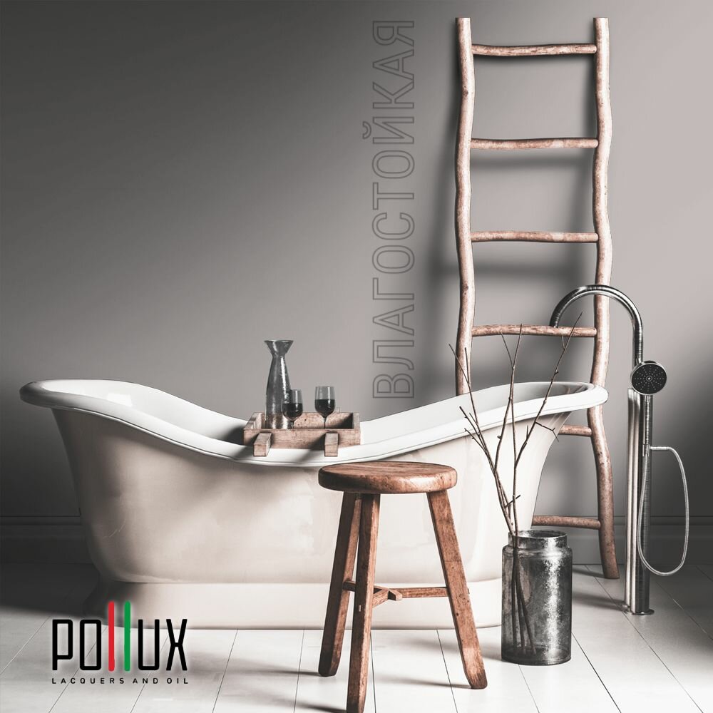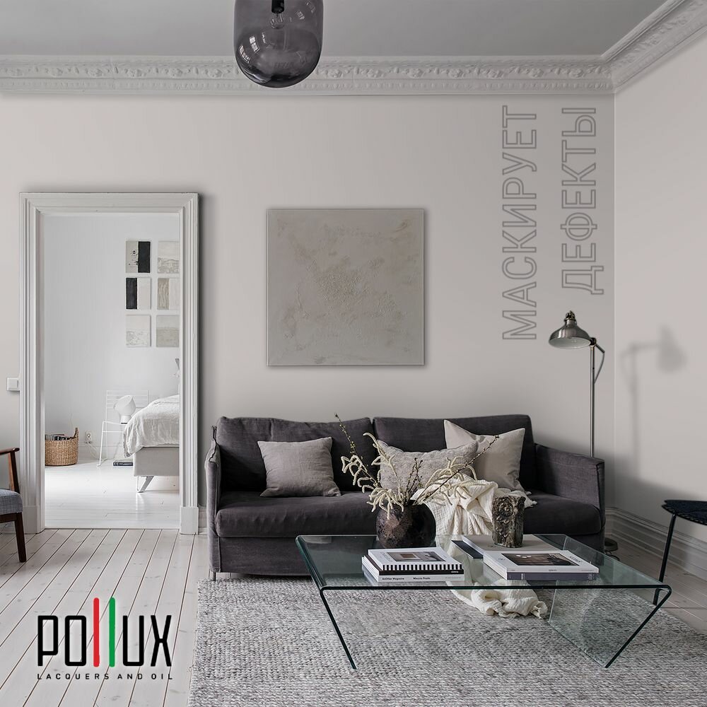 Краска моющаяся интерьерная для стен и потолков, Pollux INTERIOR без запаха, быстросохнущая, акриловая, матовое покрытие, цвет NCS S 7020-R, 1л.