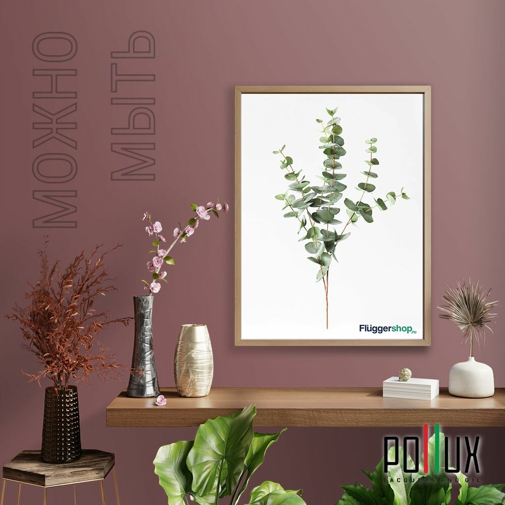 Краска моющаяся интерьерная для стен и потолков, Pollux INTERIOR без запаха, быстросохнущая, акриловая, матовое покрытие, цвет NCS S 2002-R, 1л.