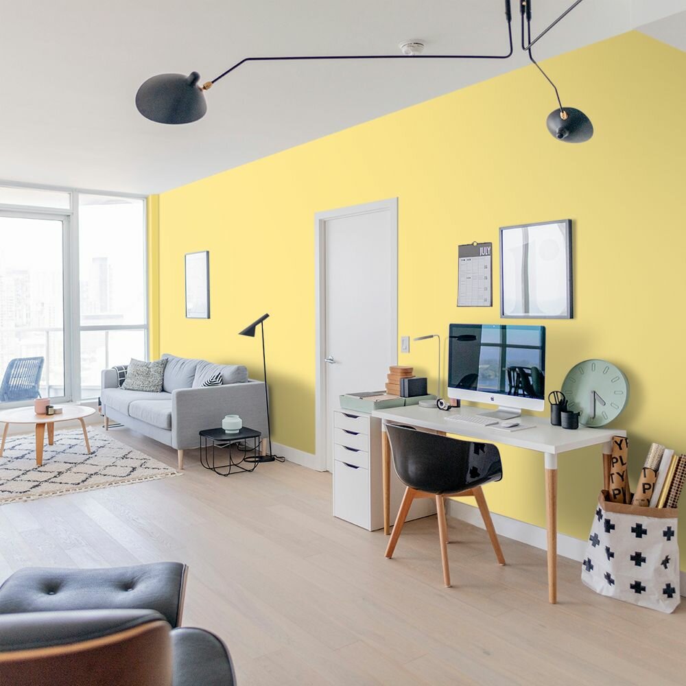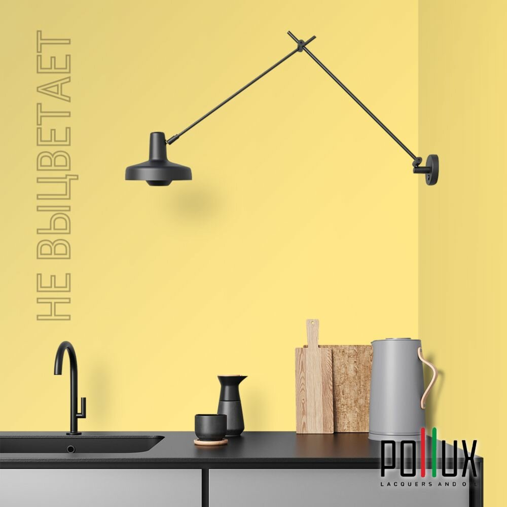 Краска моющаяся интерьерная для стен и потолков, Pollux INTERIOR без запаха, быстросохнущая, акриловая, матовое покрытие, цвет NCS S 1510-Y, 1л.