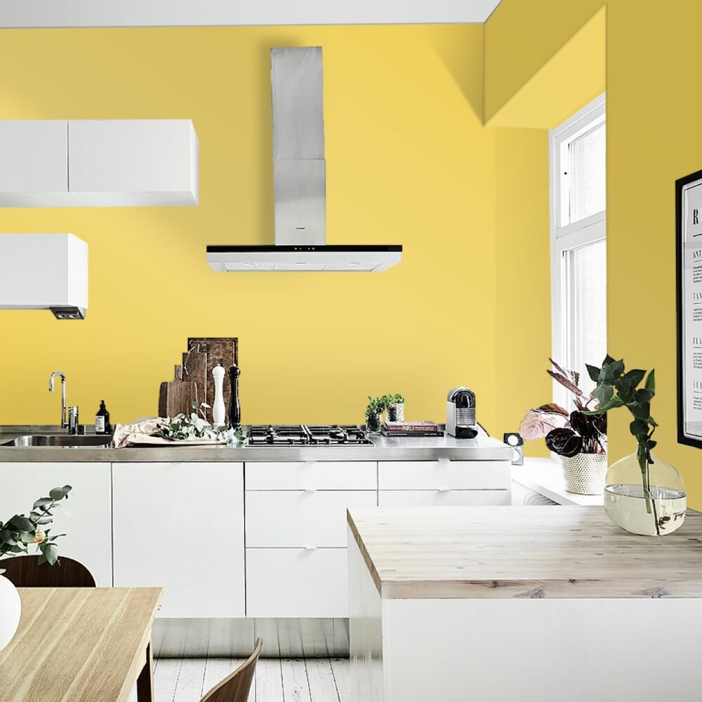 Краска моющаяся интерьерная для стен и потолков, Pollux INTERIOR без запаха, быстросохнущая, акриловая, матовое покрытие, цвет NCS S 1510-Y, 1л.