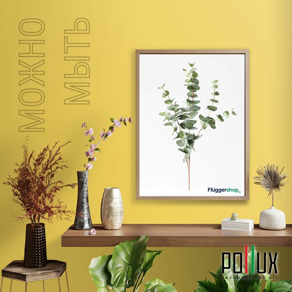 Краска моющаяся интерьерная для стен и потолков, Pollux INTERIOR без запаха, быстросохнущая, акриловая, матовое покрытие, цвет NCS S 1080-Y, 1л.