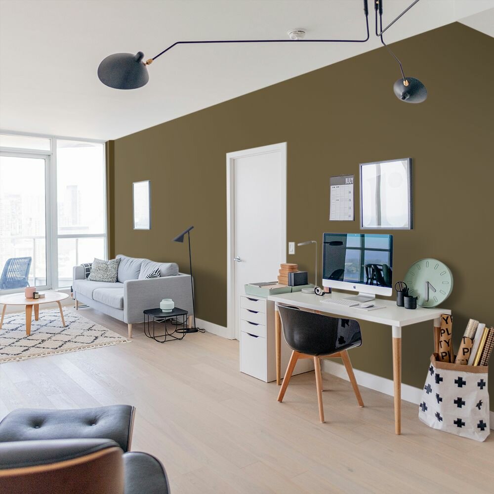 Краска моющаяся интерьерная для стен и потолков, Pollux INTERIOR без запаха, быстросохнущая, акриловая, матовое покрытие, цвет NCS S 1060-G60Y, 1л.