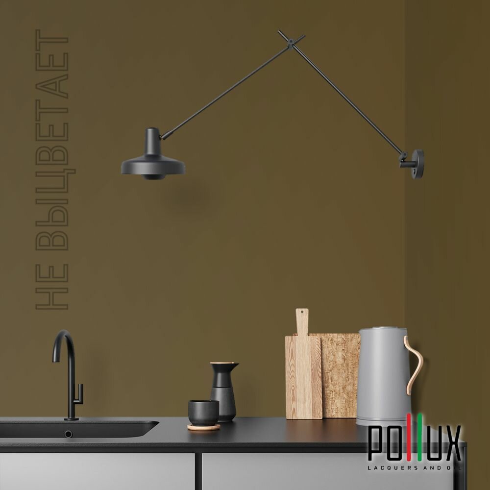 Краска моющаяся интерьерная для стен и потолков, Pollux INTERIOR без запаха, быстросохнущая, акриловая, матовое покрытие, цвет NCS S 8502-Y, 1л.