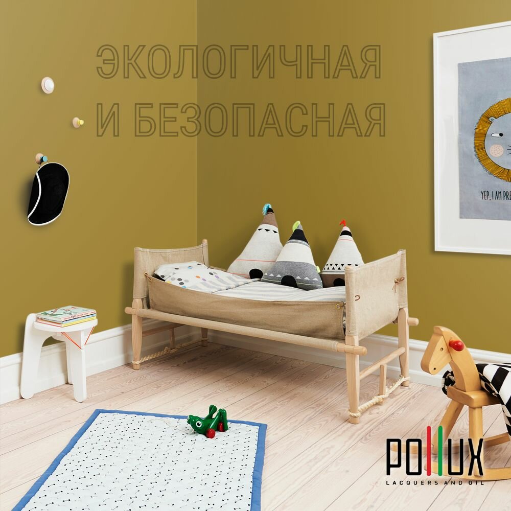 Краска моющаяся интерьерная для стен и потолков, Pollux INTERIOR без запаха, быстросохнущая, акриловая, матовое покрытие, цвет NCS S 4020-Y, 1л.