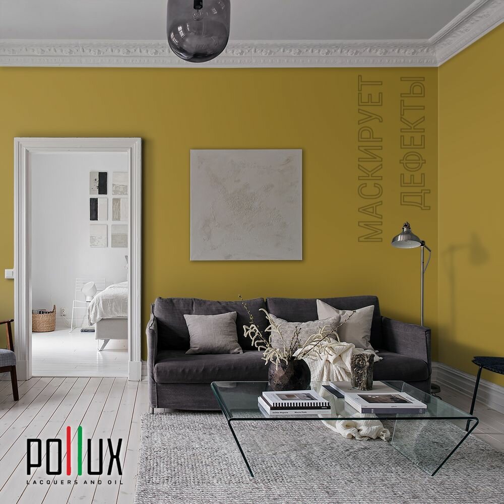 Краска моющаяся интерьерная для стен и потолков, Pollux INTERIOR без запаха, быстросохнущая, акриловая, матовое покрытие, цвет NCS S 4030-Y, 1л.