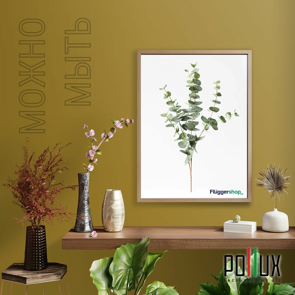 Краска моющаяся интерьерная для стен и потолков, Pollux INTERIOR без запаха, быстросохнущая, акриловая, матовое покрытие, цвет NCS S 3060-G90Y, 1л.