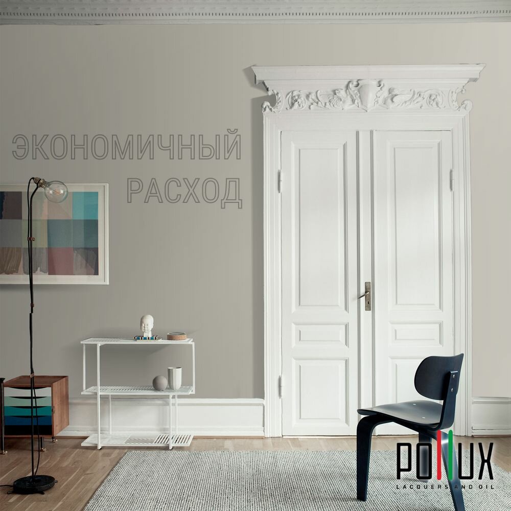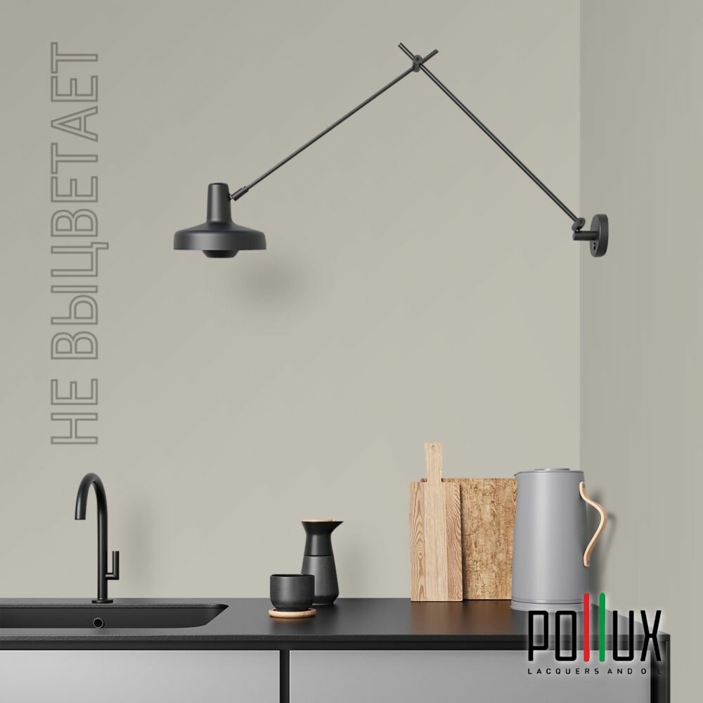 Краска моющаяся интерьерная для стен и потолков, Pollux INTERIOR без запаха, быстросохнущая, акриловая, матовое покрытие, цвет NCS S 7020-Y, 1л.