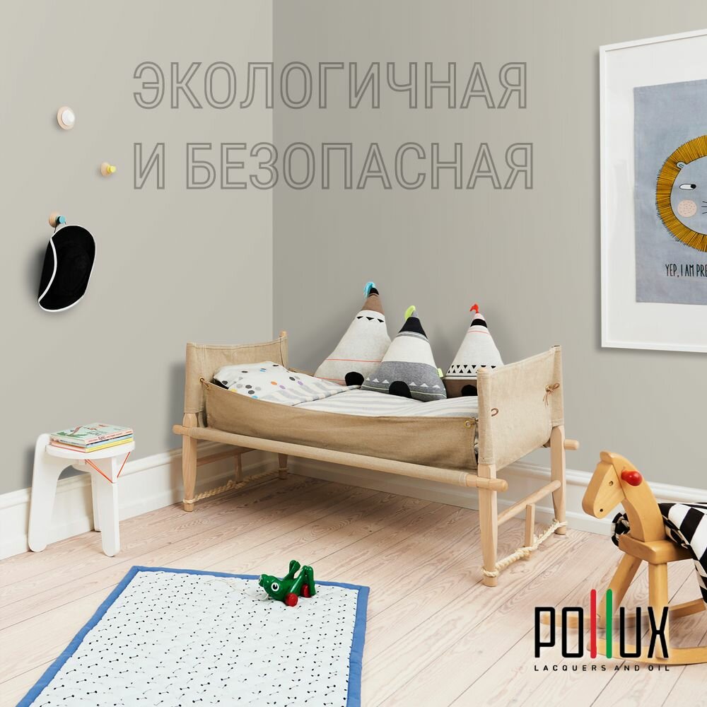 Краска моющаяся интерьерная для стен и потолков, Pollux INTERIOR без запаха, быстросохнущая, акриловая, матовое покрытие, цвет NCS S 1502-Y, 1л.