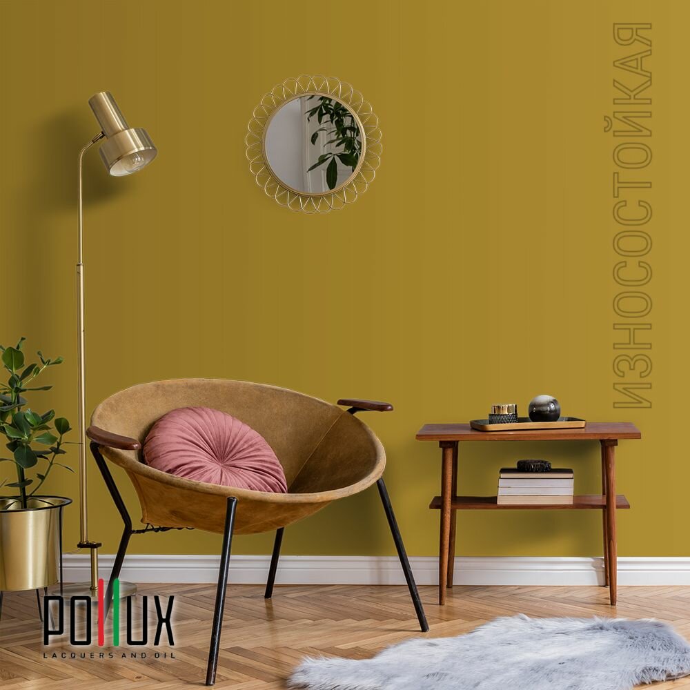 Краска моющаяся интерьерная для стен и потолков, Pollux INTERIOR без запаха, быстросохнущая, акриловая, матовое покрытие, цвет NCS S 1505-Y, 1л.