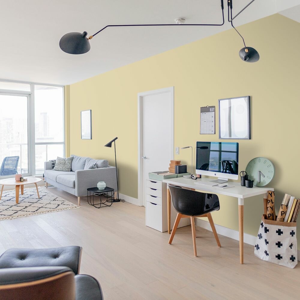 Краска моющаяся интерьерная для стен и потолков, Pollux INTERIOR без запаха, быстросохнущая, акриловая, матовое покрытие, цвет NCS S 1510-Y, 1л.