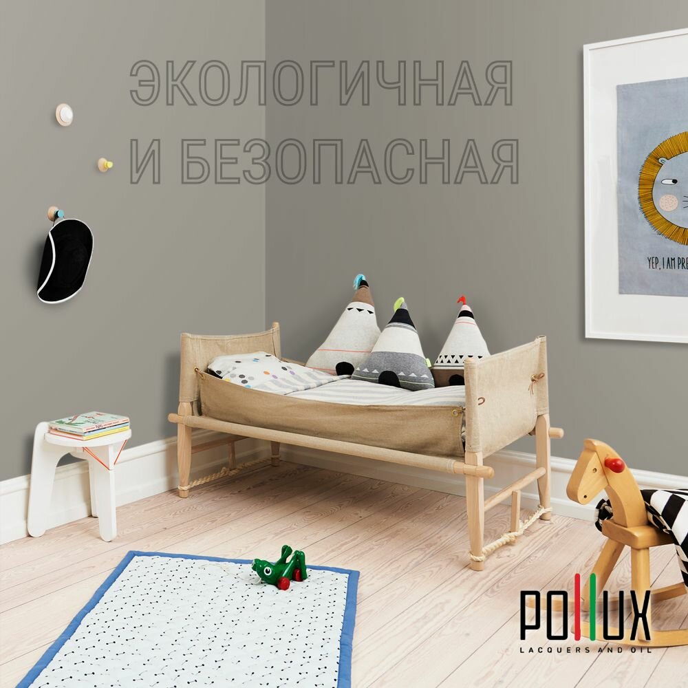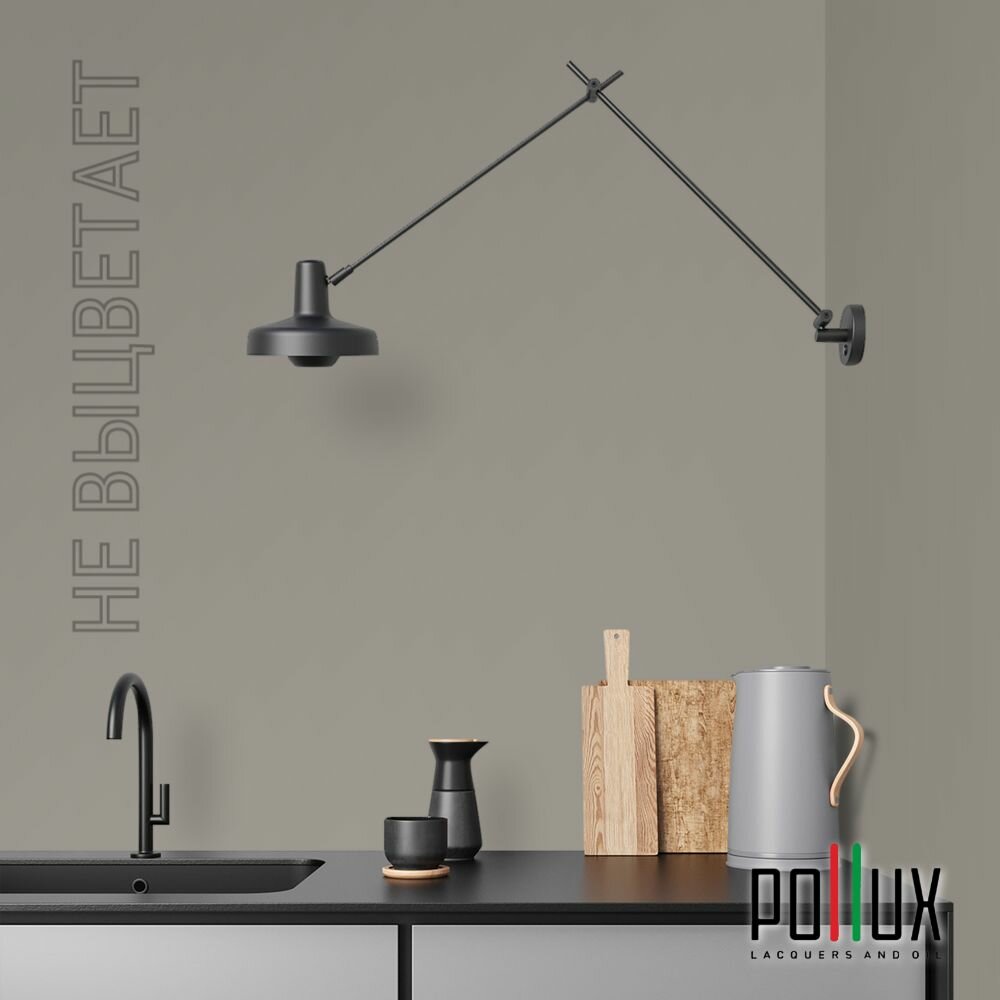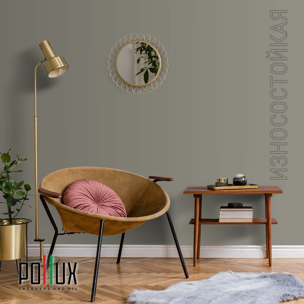 Краска моющаяся интерьерная для стен и потолков, Pollux INTERIOR без запаха, быстросохнущая, акриловая, матовое покрытие, цвет NCS S 7020-Y, 1л.