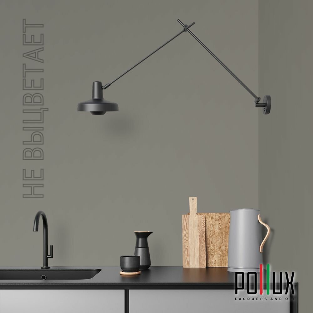 Краска моющаяся интерьерная для стен и потолков, Pollux INTERIOR без запаха, быстросохнущая, акриловая, матовое покрытие, цвет NCS S 7020-Y, 1л.