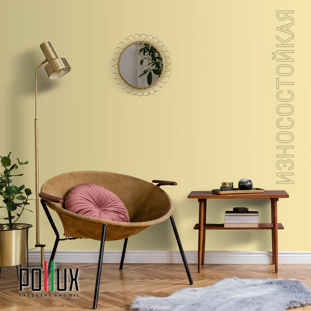 Краска моющаяся интерьерная для стен и потолков, Pollux INTERIOR без запаха, быстросохнущая, акриловая, матовое покрытие, цвет NCS S 1505-Y, 1л.