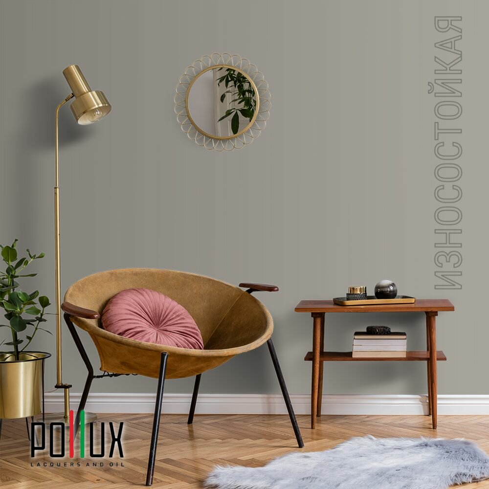 Краска моющаяся интерьерная для стен и потолков, Pollux INTERIOR без запаха, быстросохнущая, акриловая, матовое покрытие, цвет NCS S 8502-Y, 1л.