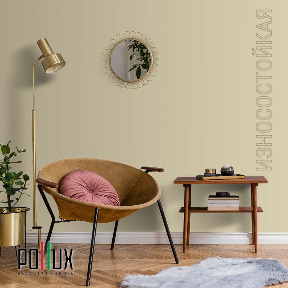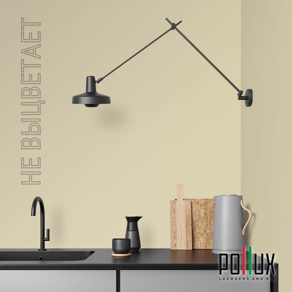 Краска моющаяся интерьерная для стен и потолков, Pollux INTERIOR без запаха, быстросохнущая, акриловая, матовое покрытие, цвет NCS S 1502-Y, 1л.