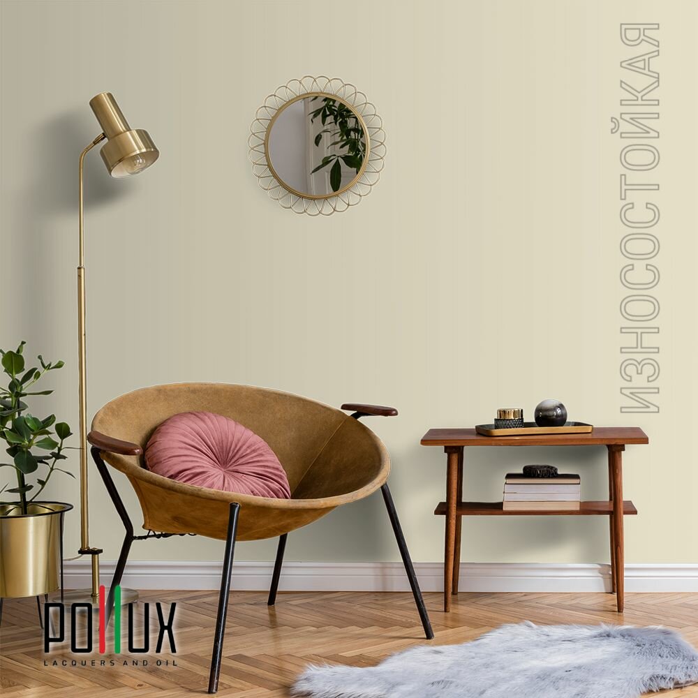 Краска моющаяся интерьерная для стен и потолков, Pollux INTERIOR без запаха, быстросохнущая, акриловая, матовое покрытие, цвет NCS S 1502-Y, 1л.