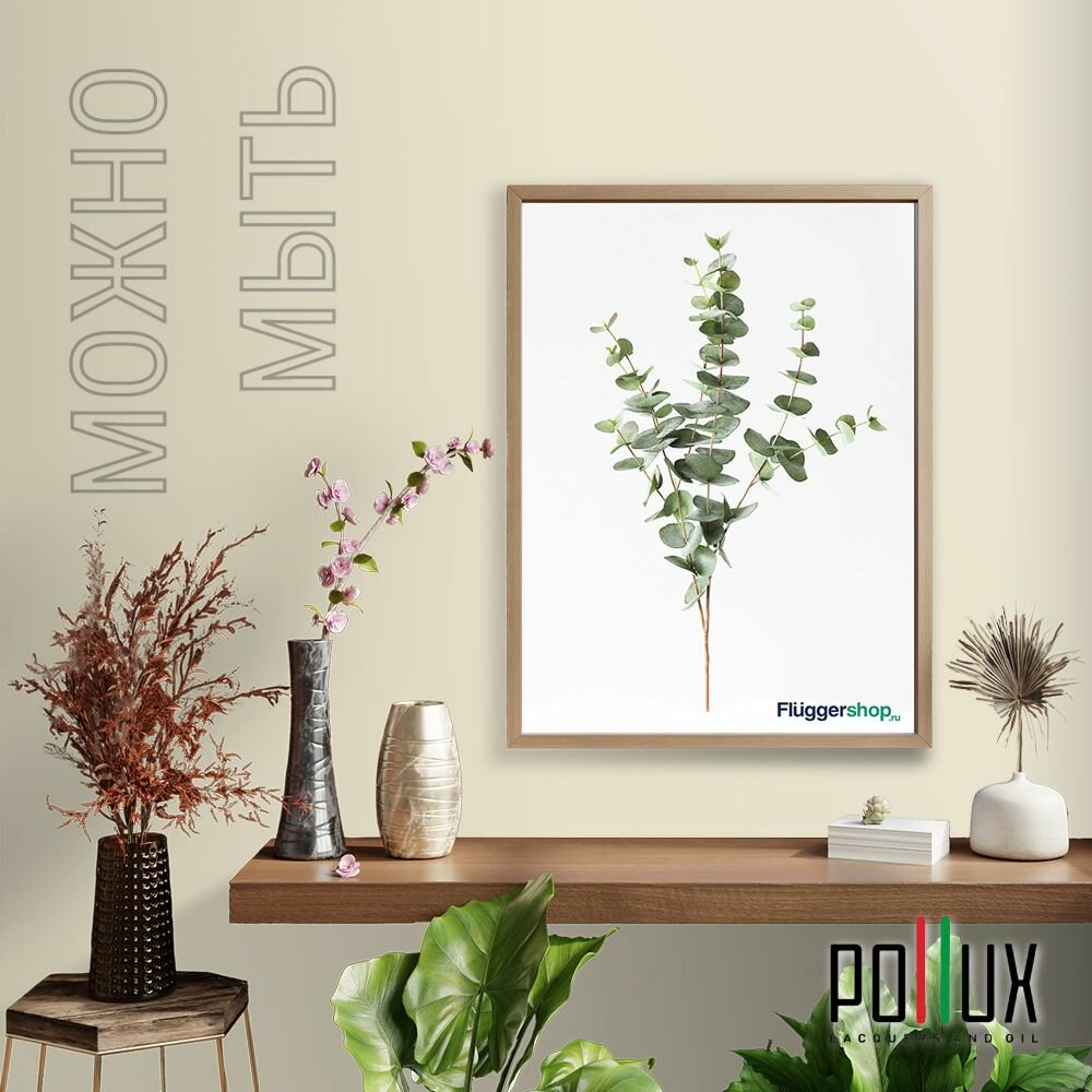 Краска моющаяся интерьерная для стен и потолков, Pollux INTERIOR без запаха, быстросохнущая, акриловая, матовое покрытие, цвет NCS S 4030-Y, 1л.